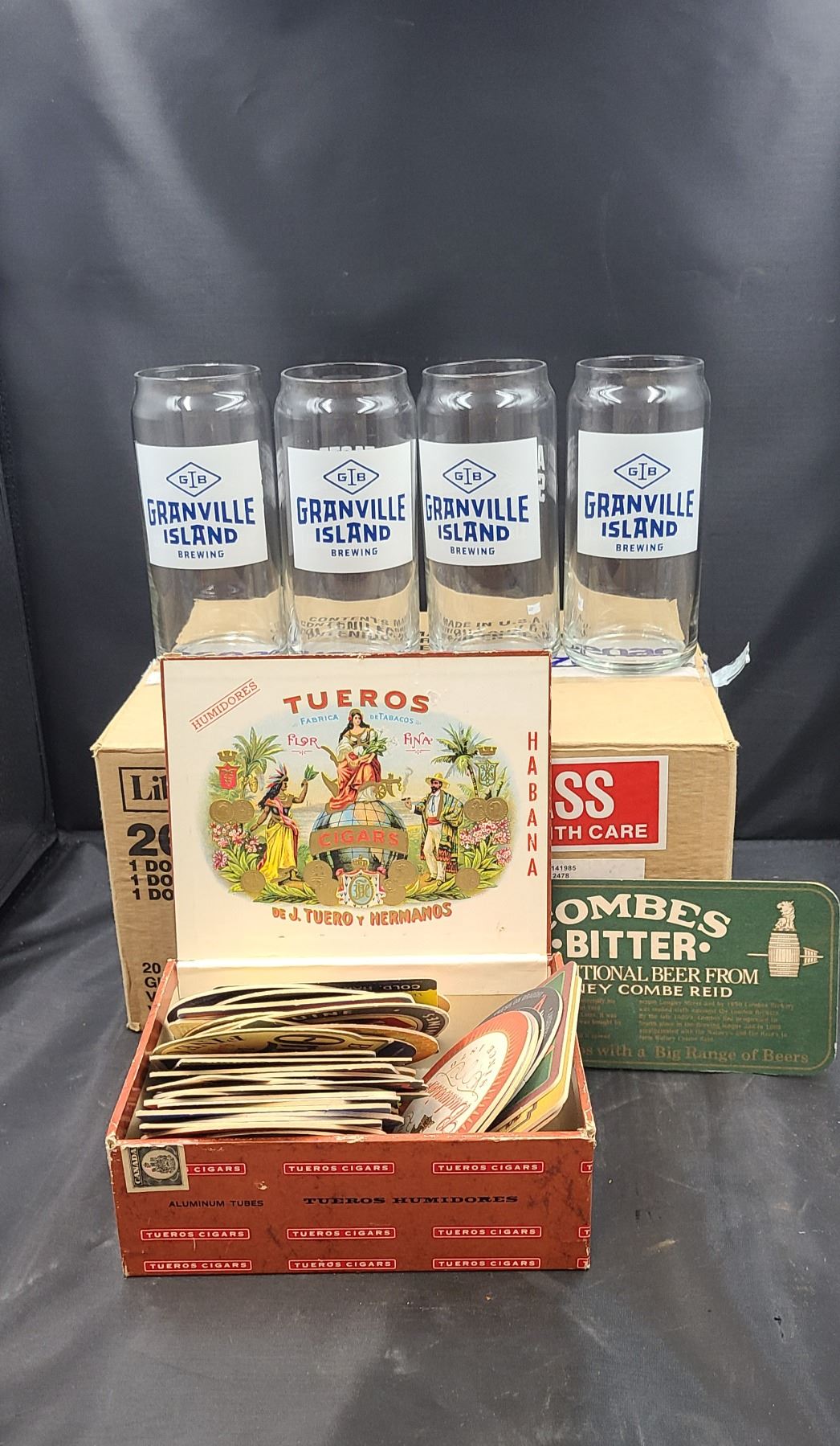 LARGE COLLECTION VINTAGE BEER COASTERS & CASE 12 UNUSED GRANVILLE ISLAND BREWING GLASSES