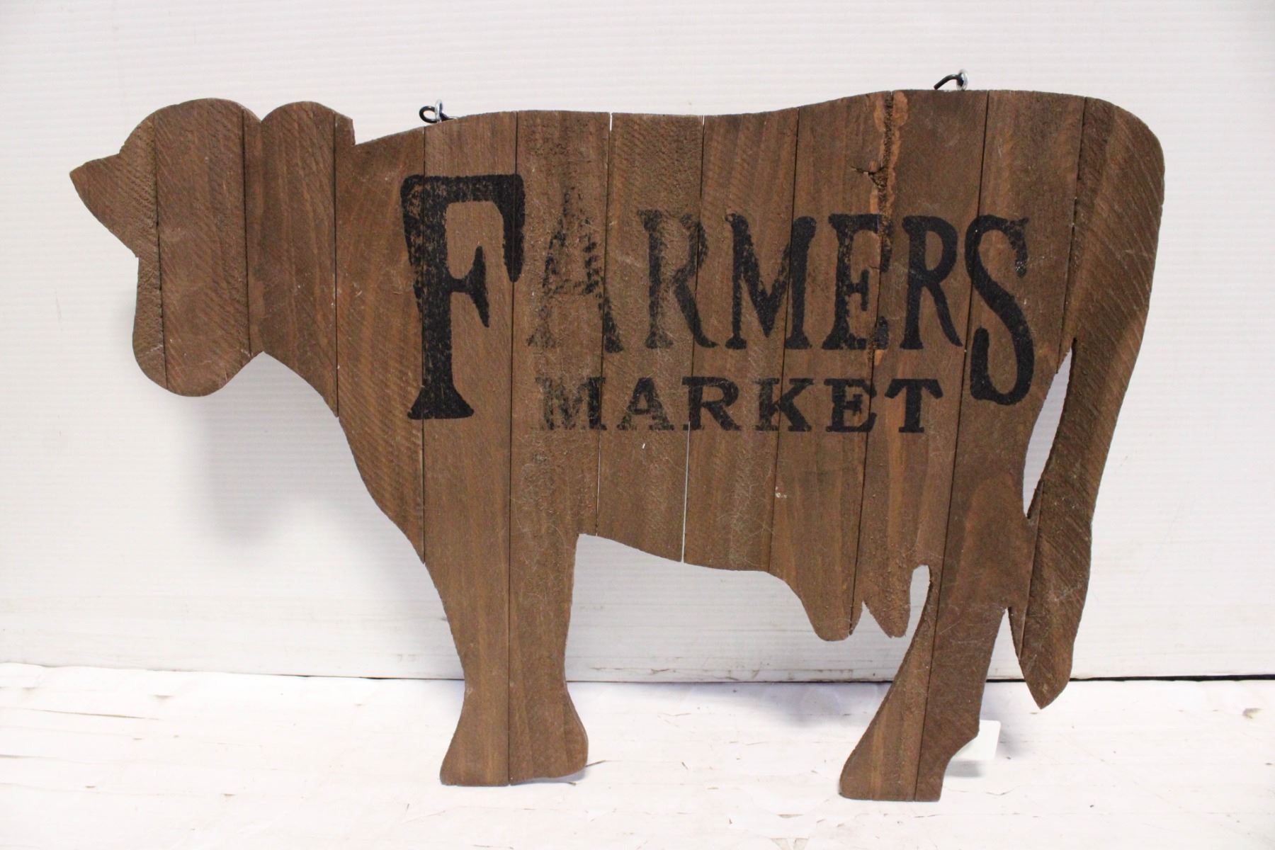 LARGE COW FARMERS MARKET WOOD SIGN-ESTATE