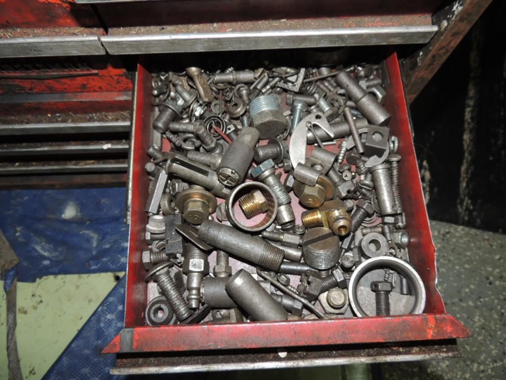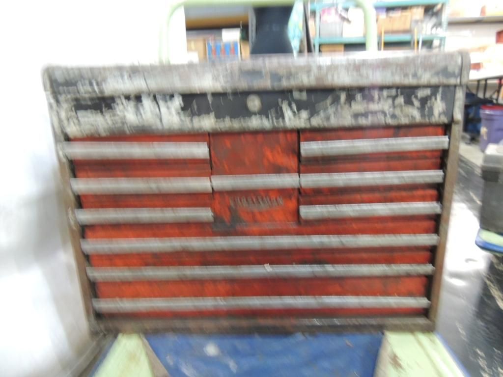 10 DRAWER LOCKING TOOL BOX FULL MISC TOOLS METAL TOOL BOX. WRENCHES, SCREW DRIVERS. GARAGE TOOLS REPAIR AS SHOWN SEE PHOTO FOR MORE DETAILS.