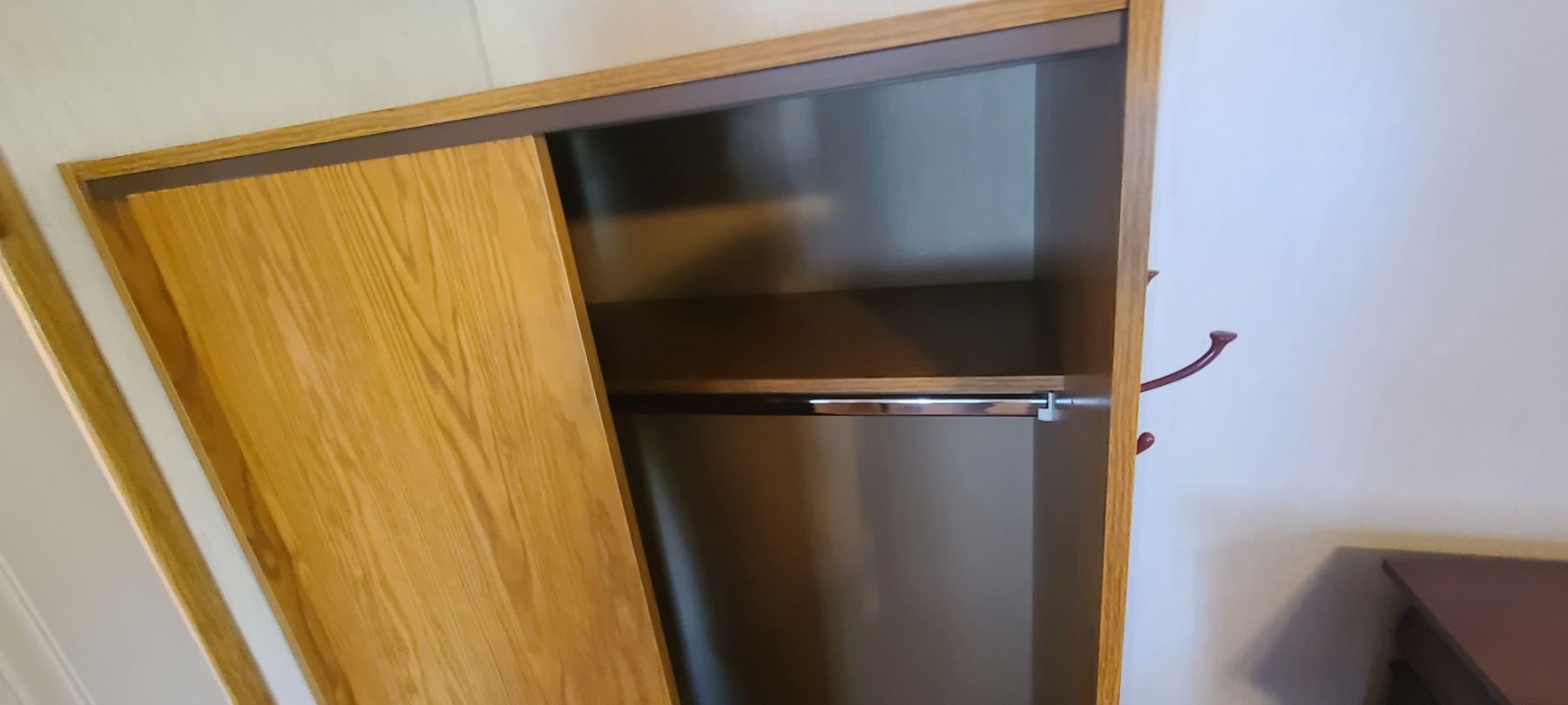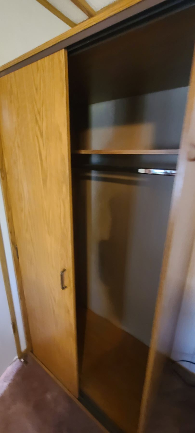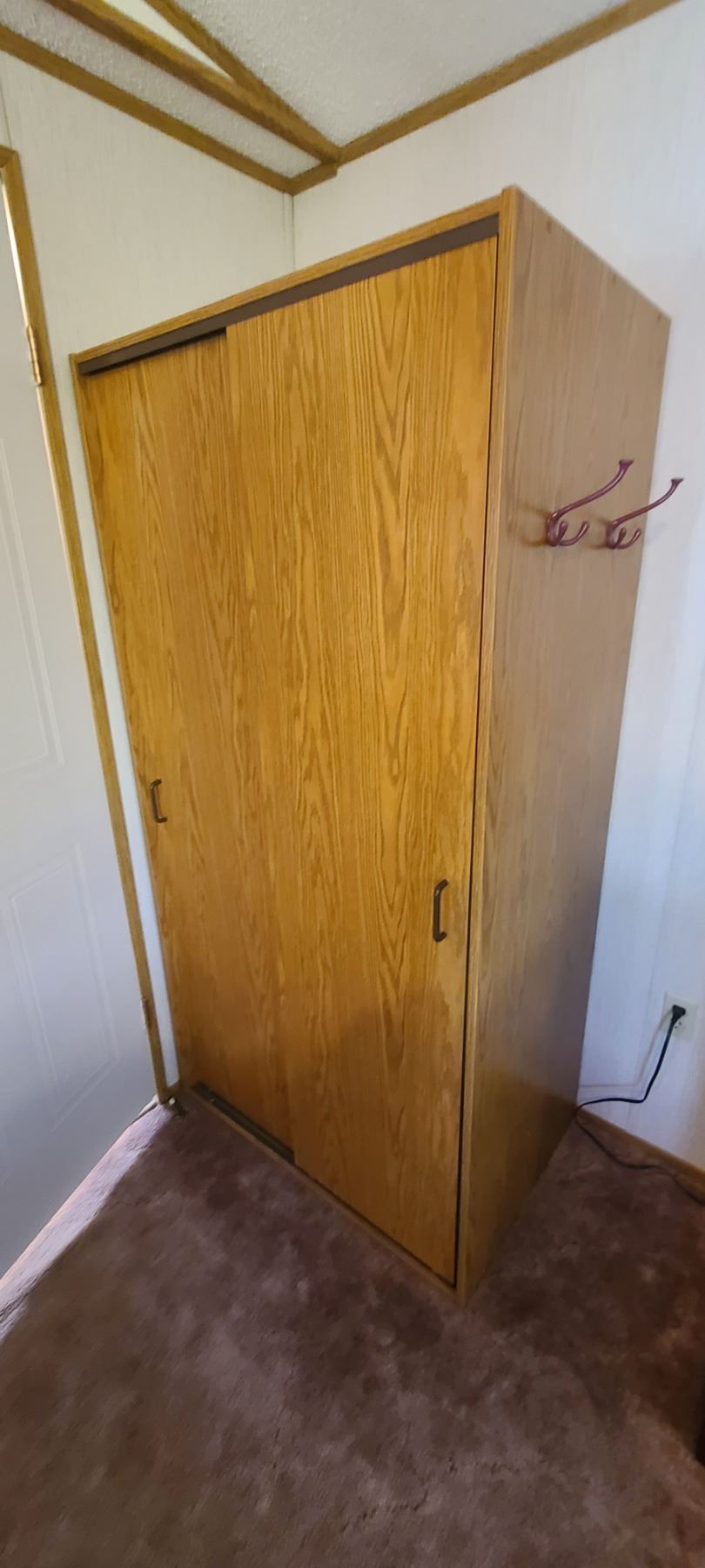 LARGE CUPBARD/CABINET WITH SLIDING DOORS, ONE SHELF AND CLOTHES RACK SIZE 3' X 2 X6'