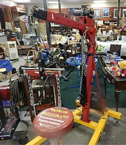 LARGE CUSTOM DESSIGNED HYDRAULIC AND 12 VOLT ENGINE LIFT - CHERRY PICKER