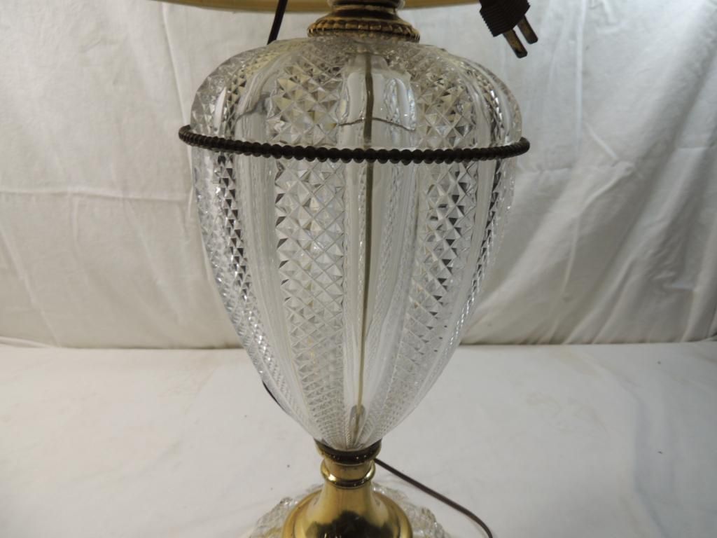 LARGE LAMP CUT GLASS CRYSTAL LIKE ELEGANT TABLE LAMP AS SHOWN SEE PHOTO FOR MORE DETAILS.