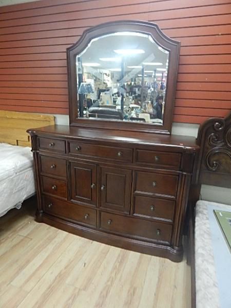 LARGE DARK CHERRY DRESSER WITH MIRROR & "MOLE CHEST"(CUPBOARD IN THE MIDDLE) - NEW