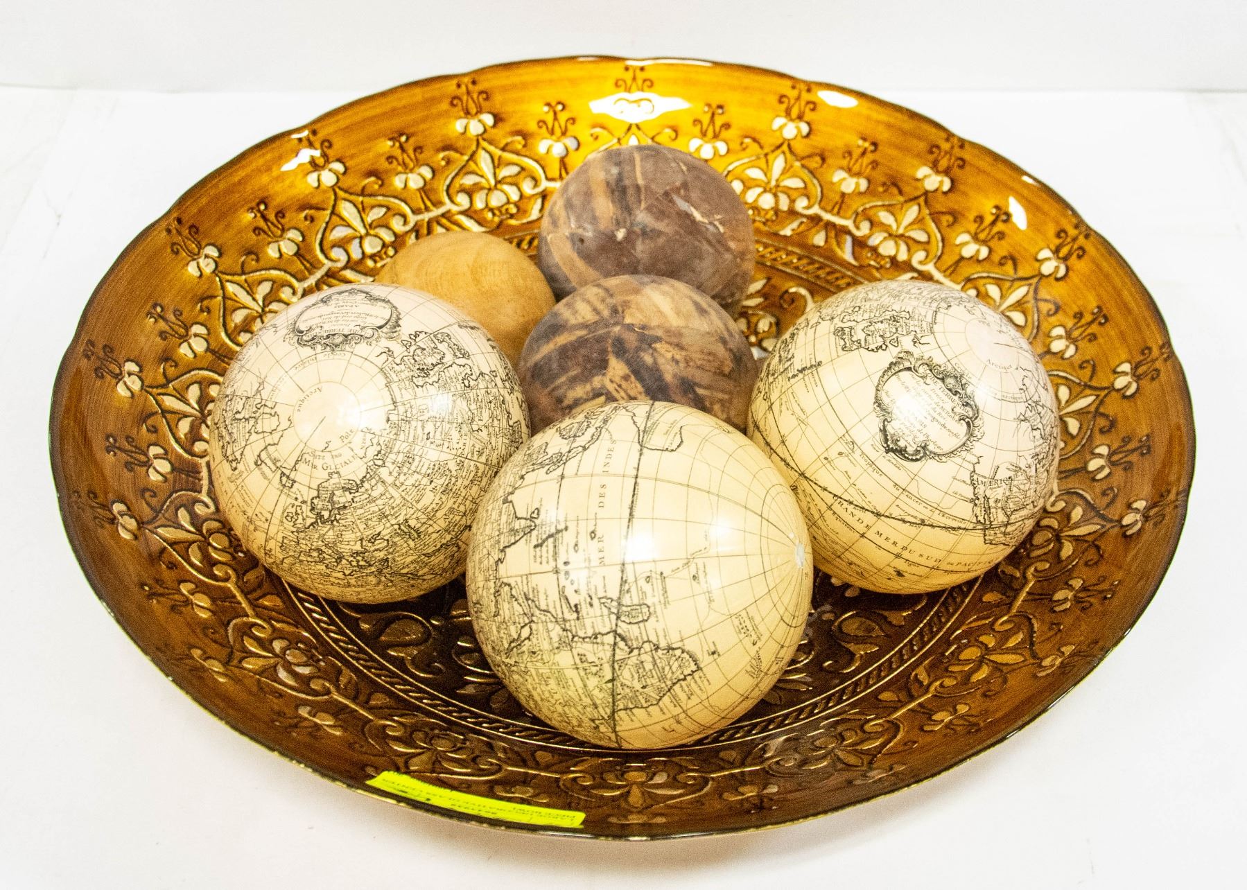 ANTIQUE BRONZE PATTERN WITH 6 DECORATIVE GLOBES (17.5"-DIAM. X 4"-TALL)