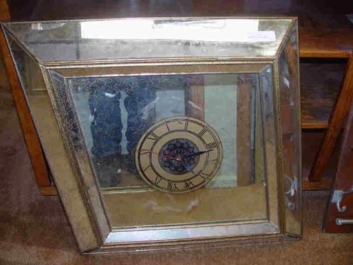 LARGE DIAMOND SHAPE MIRROR CLOCK WALL HANGING
