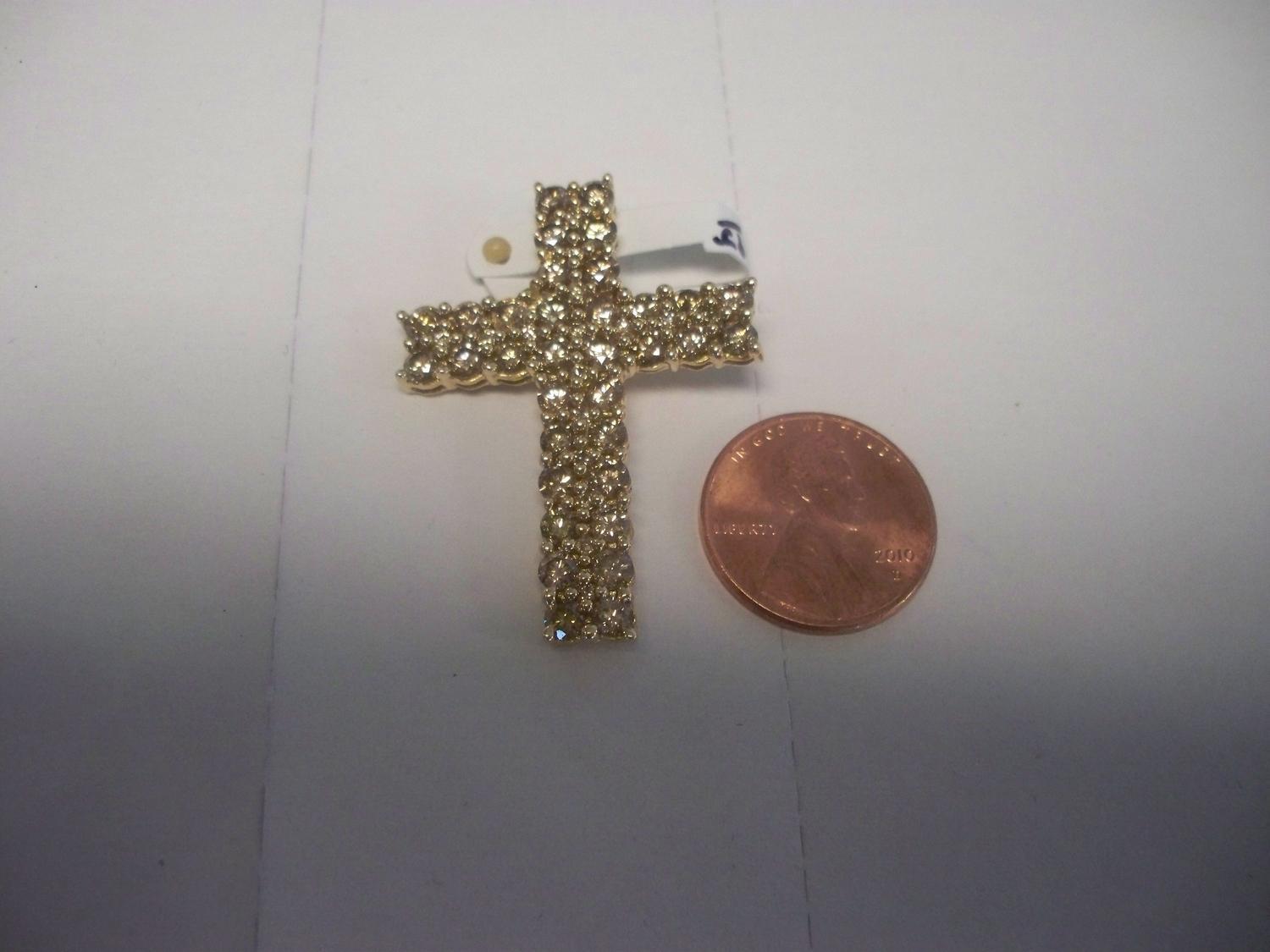 LARGE DIAMOND STUDDED CROSS, 2 1/2 CARATS DIAMONDS, 9.2 GRAMS 14K GOLD