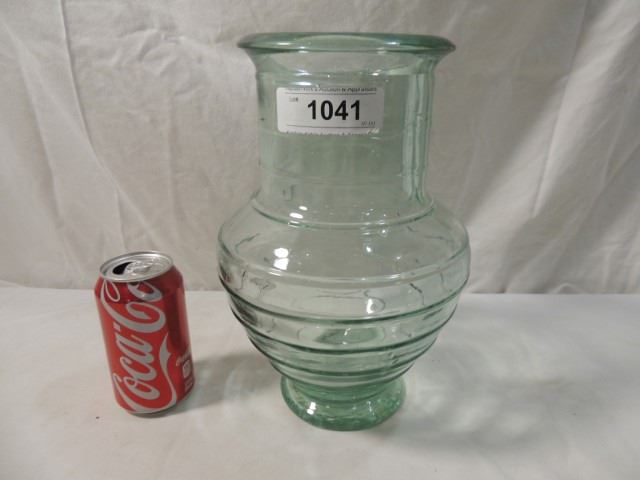 VERY NICE, ELEGANT BLOWN GLASS VASE, LIKELY ITALIAN, STANDS 11.5" TALL, AND 7.5" IN DIAMETER AT THE WIDEST. VERY NICE, NO CHIPS, CRACKS, ETC.