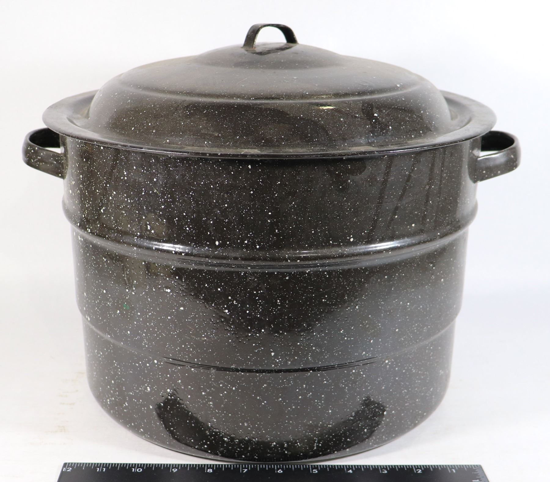 APPROX 14" DIAMETER X 9.5" TALL. WITH LID AND INSERT