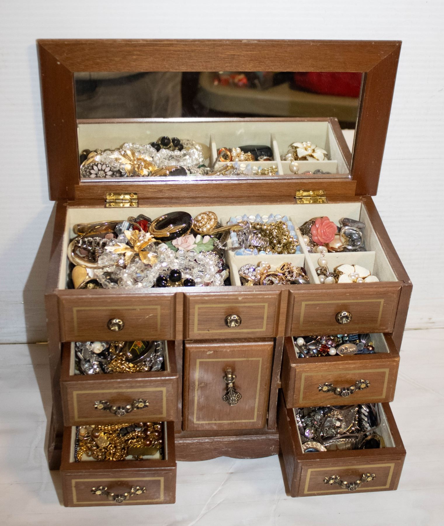 LARGE ESTATE JEWELERY BOX WITH JEWELERY