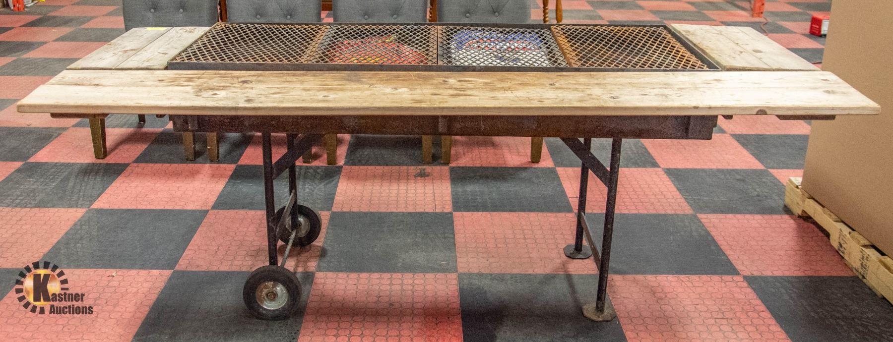 WITH WHEELS AND HANDLES, REMOVEABLE SERVING TABLES ON FRONT AND SIDES, INCLUDES 2 NEW BAGS OF CHARCOAL BRIQUETTES, 1260 SQ. INCH COOKING SURFACE (60"X21") - 83"L X 33"W X 32.75"H WITH TABLES ATTACHED **ALL ITEMS MUST BE REMOVED BY 5PM SATURDAY, MAY 20TH 2023. ALL REMAINING ITEMS WILL BE SUBJECT TO A $6.00 PER DAY STORAGE CHARGE. ANY ITEMS REMAINING AFTER MONDAY, JUNE 5TH, 2023 WILL BE CONSIDERED FORFEITED. NO REFUNDS WILL BE ISSUED FOR FORFEITED ITEMS. TO SCHEDULE A PICK UP APPOINTMENT CLICK HERE