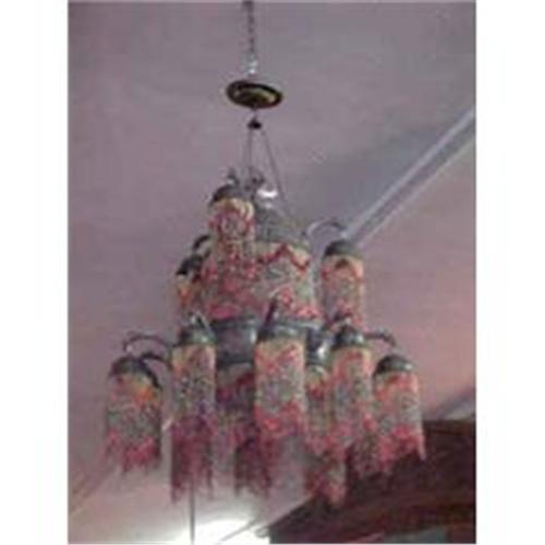 <table width="100%" border="0" cellspacing="0" cellpadding="4"><tr><td><em> </em></td></tr><tr> <td width="100%"> Exquisite Metal and Multi Color Beaded 12 Light Chandelier with Pierced Metal Body. This exotic piece is quite a show stopper and will be the focal point anywhere it hangs. </td></tr><tr> <td> </td></tr><tr> <td>Reference #: CW1</td></tr><tr><td>Condition:Excellent</td></tr><tr><td>Year:20th Century</td></tr><tr><td>Country:European</td></tr><tr><td>Height:43</td></tr><tr><td>Width:30</td></tr><tr><td>Title:LARGE EXOTIC BEADED CHANDELIER FIXTURE</td></tr><tr><td>Style:Exotic</td></tr><tr><td>Location:Florida & New York, USA</td></tr></table>