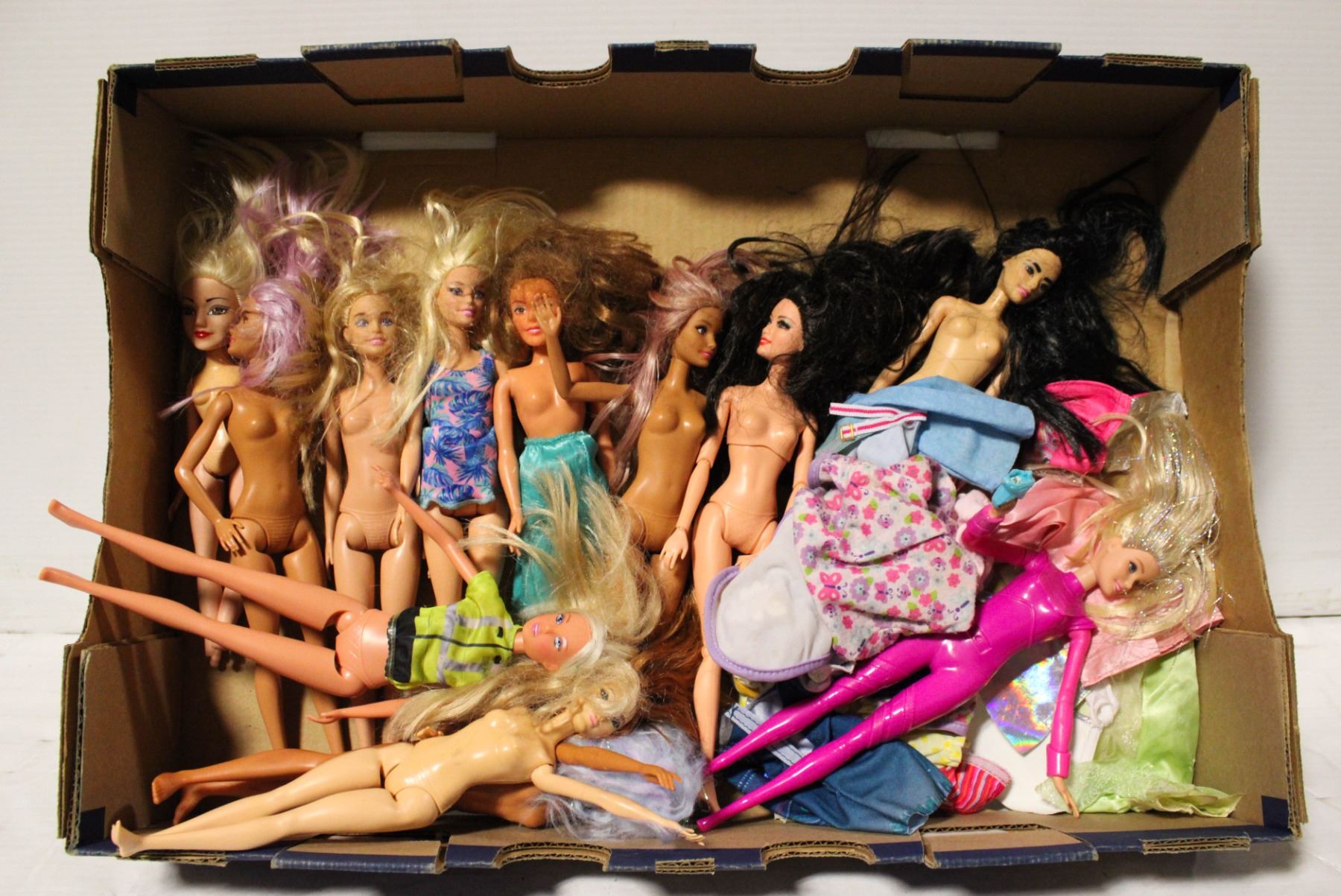 LARGE FLAT OF DOLLS WITH CLOTHING