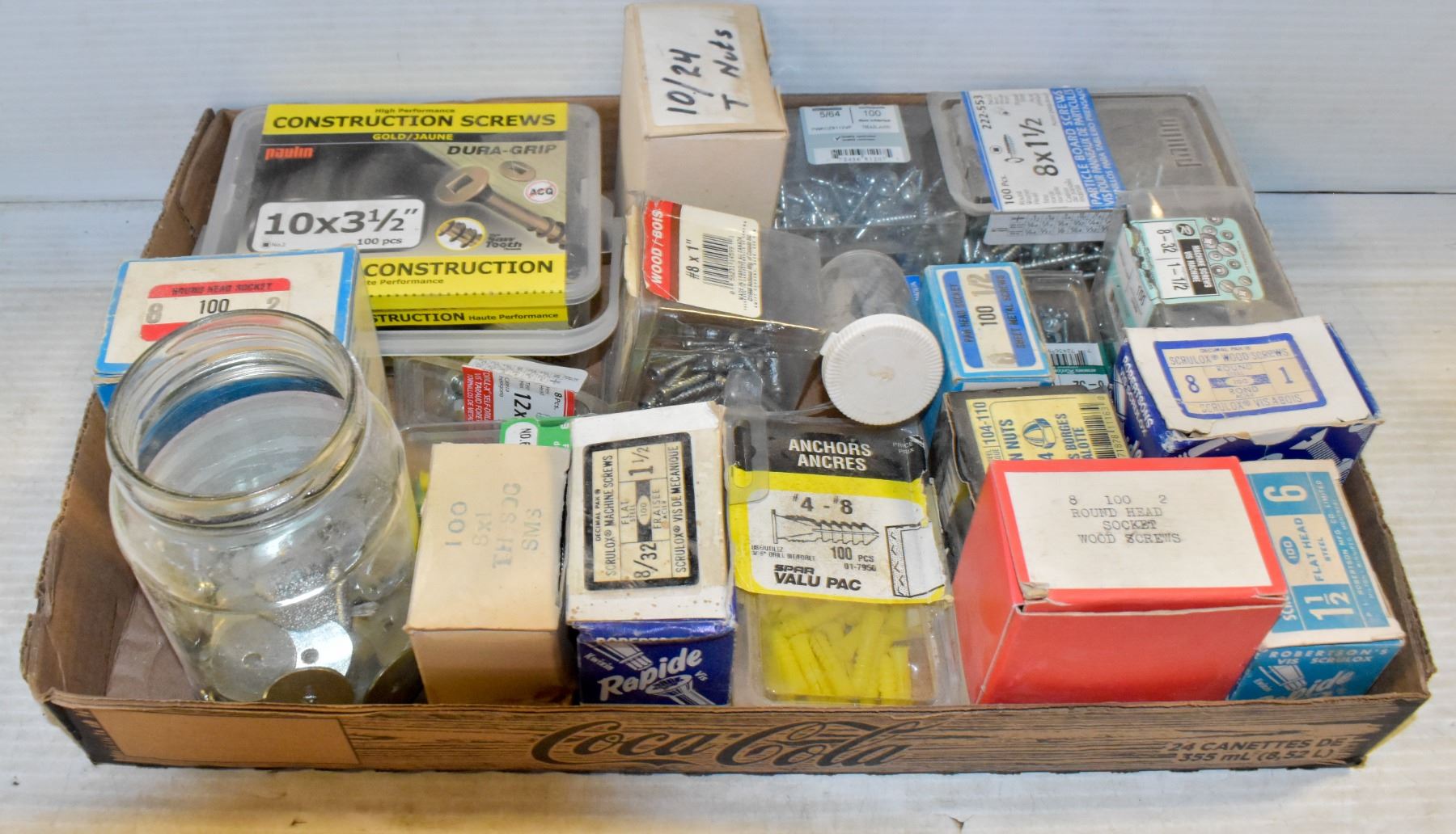 LARGE FLAT OF HARDWARE - NUTS, BOLTS, SCREWS &