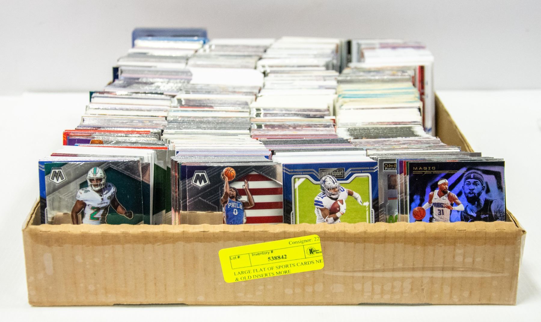 LARGE FLAT OF SPORTS CARDS NEW & OLD INSERTS MORE