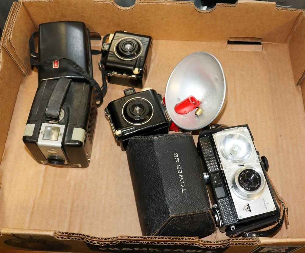 LARGE FLAT OF VINTAGE CAMERAS AND GEAR