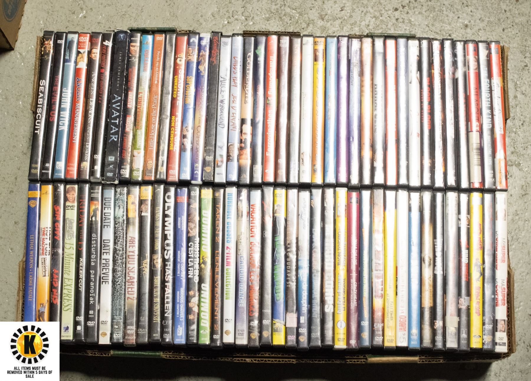 LARGE FLAT WITH APPX 78 DVD MOVIES