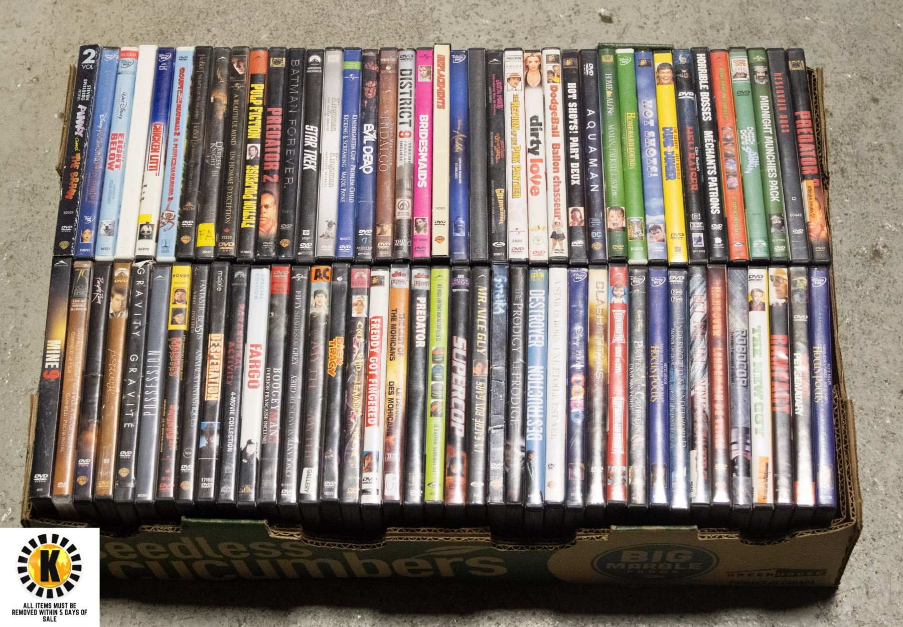 LARGE FLAT WITH APPX 78 DVD MOVIES