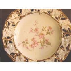 LARGE FLORAL & GILT DECORATED CHARGER. Marked on bottom "C.T." with eagle crest. 12.5" Dia.