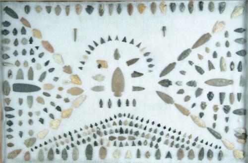 LARGE FRAMED CASE OF ARROWHEADS. Paleo Indian to Mississippian, Circa 10000BC style-1500AD style. Includes very nice Glacial Kame knife. CONDITION: Broken to very good. 9-25984-182 The Tennessee Collection of Prehistoric Indian Artifacts from the Allen Graves Estate. SPECIAL NOTE: We do not regularly sell Prehistoric Indian stone artifacts and therefore have very little experience and no expertise in this area. All of the following lots have come from the Collection of the Late Allen Graves of Tennessee. The collection was inherited some years back by his daughter, who now lives in Maine. This collection was consigned to us directly from her. We employed someone to generally identify styles and types, but as stated above, due to our lack of expertise in this field, we can not guarantee the age or origin of the following pieces. We are relying on you, the buyer, to determine to your satisfaction the origin and age of each item in the collection.