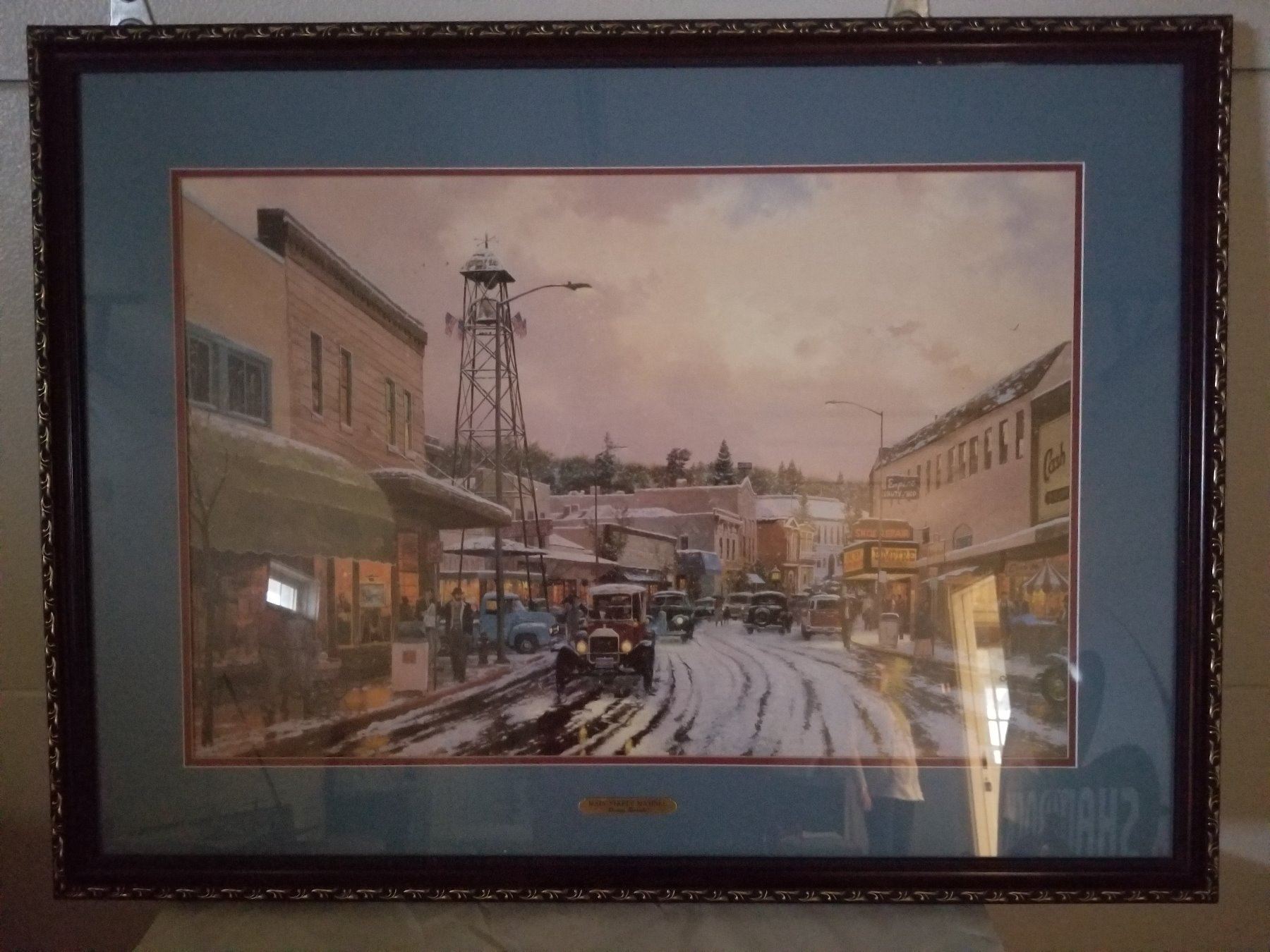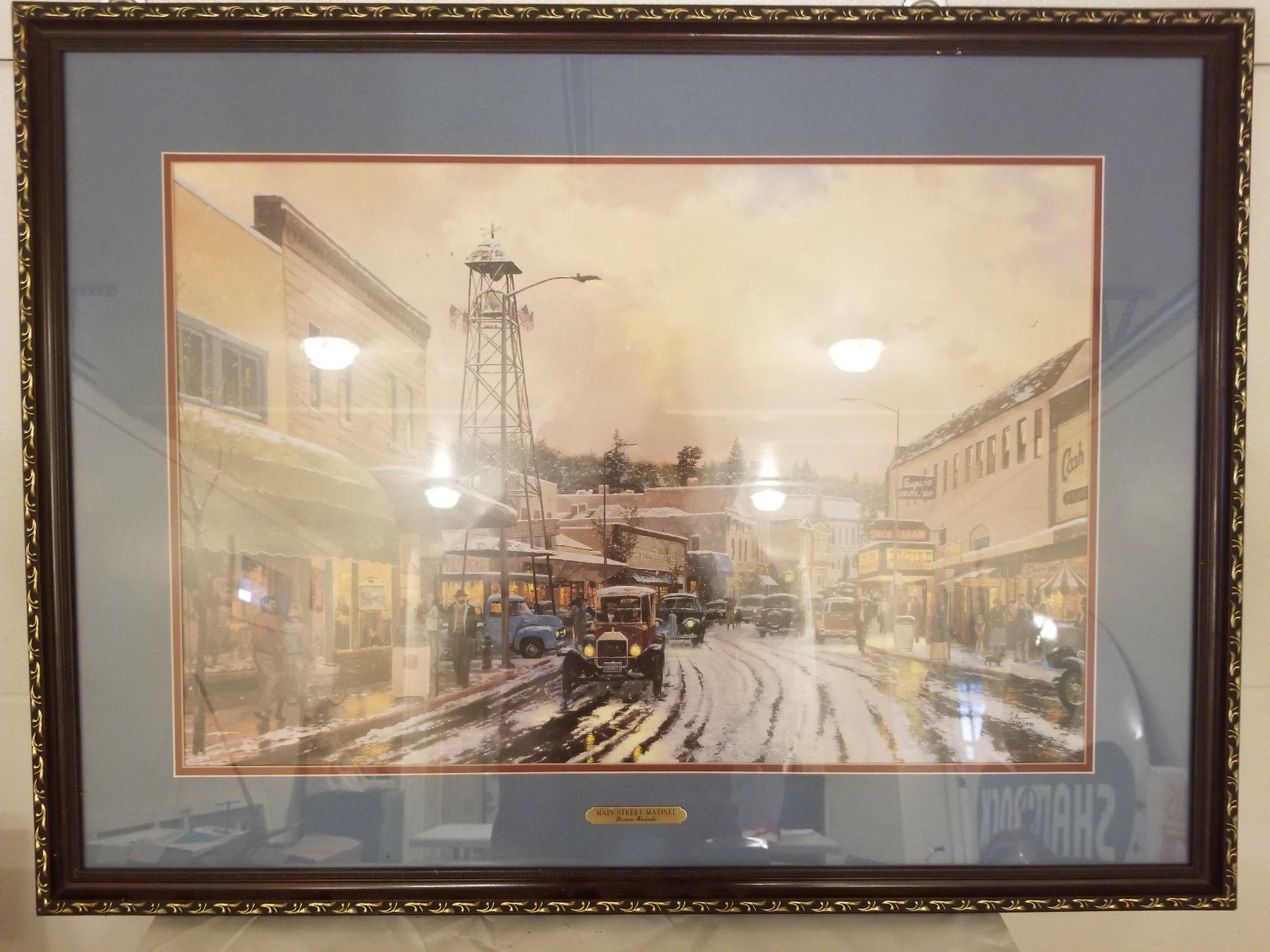 LARGE FRAMED PRINT (THOMAS KINKADE) 'MAIN STREET MATINEE' *35" X 26"*