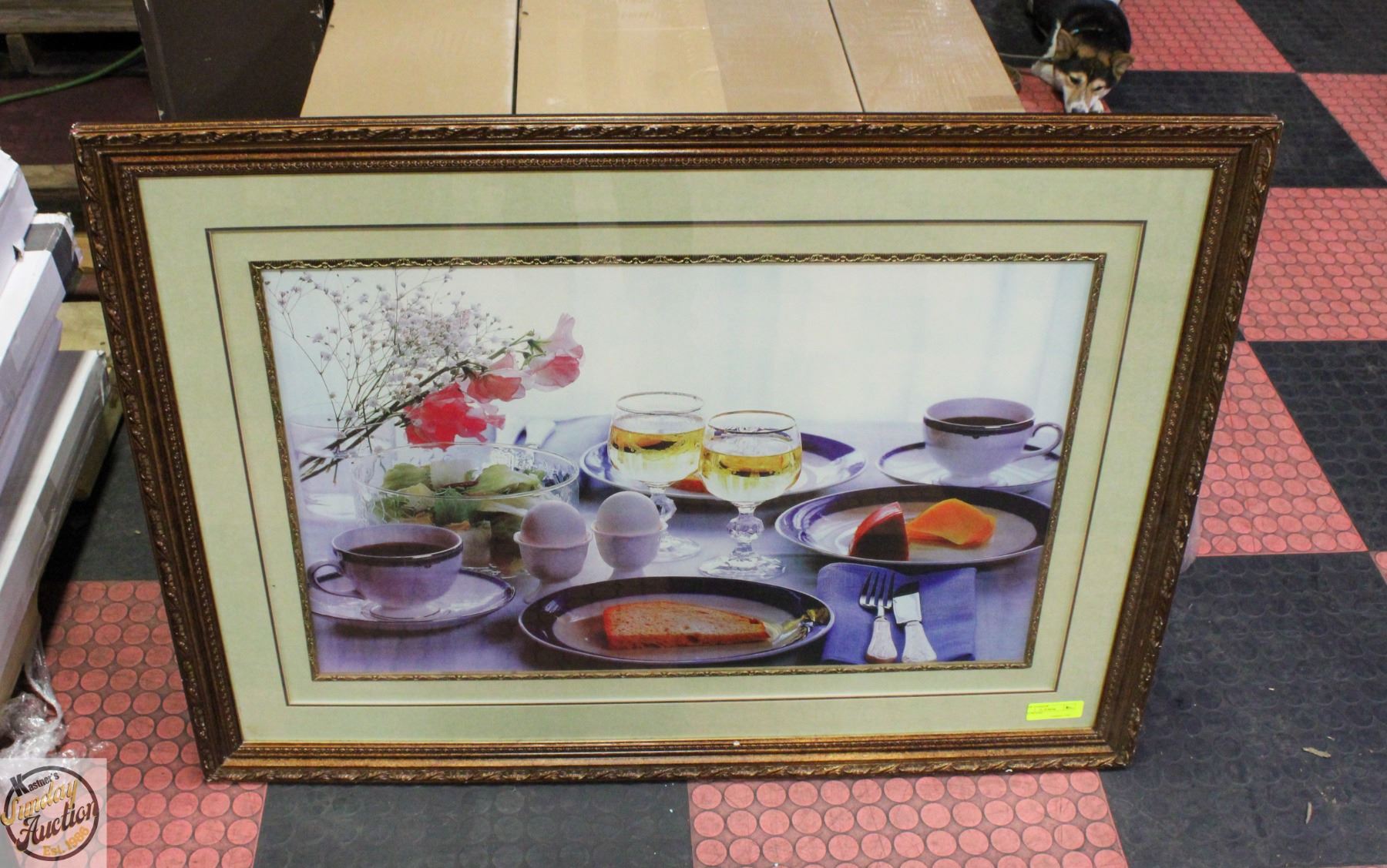 LARGE FRAMED TABLE DINING SCENE ARTWORK