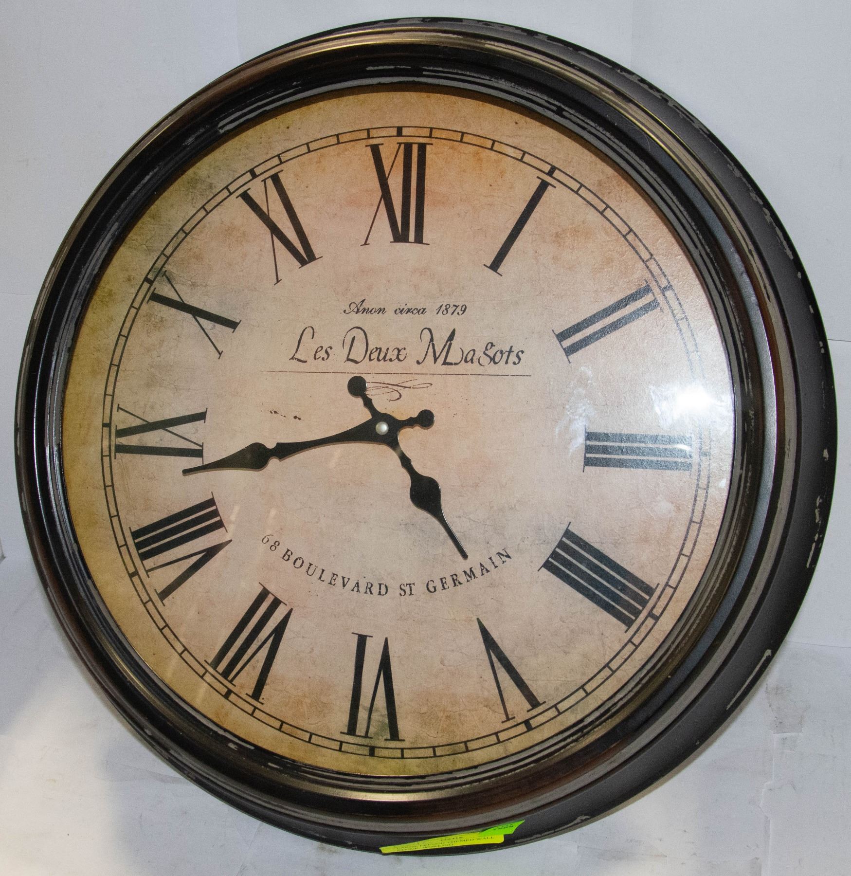 LARGE FRENCH THEMED WALL CLOCK, WORKING