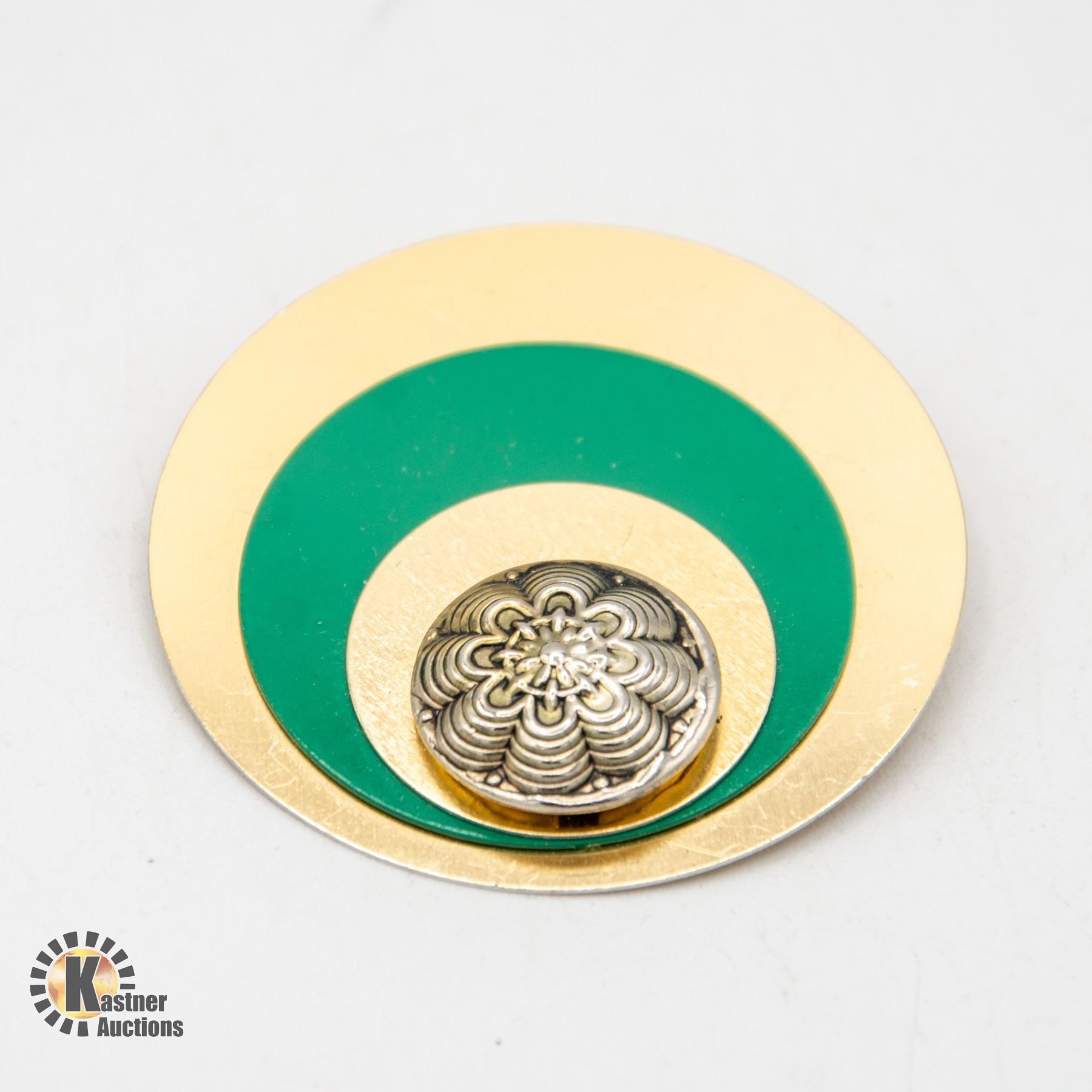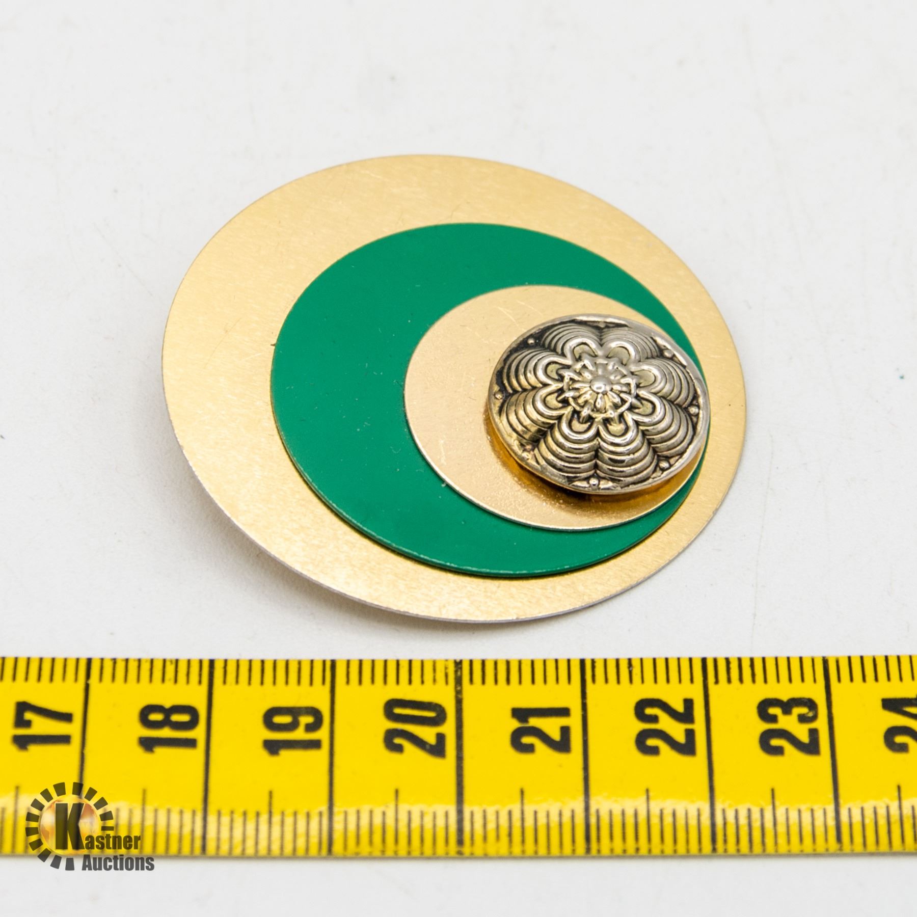 BROOCH FEATURING INTRICATE SILVER TONE BUTTON