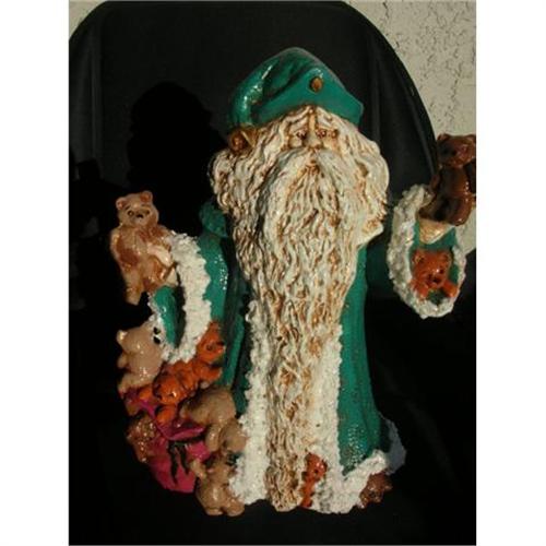 THIS LARGE GREEN FATHER CHRSTIMAS OR SANTA CLAUS WITH BEARS IS REALLY OLD. IT IS 10" (25CM) HEIGHT, 7" (17.5CM) WIDE.