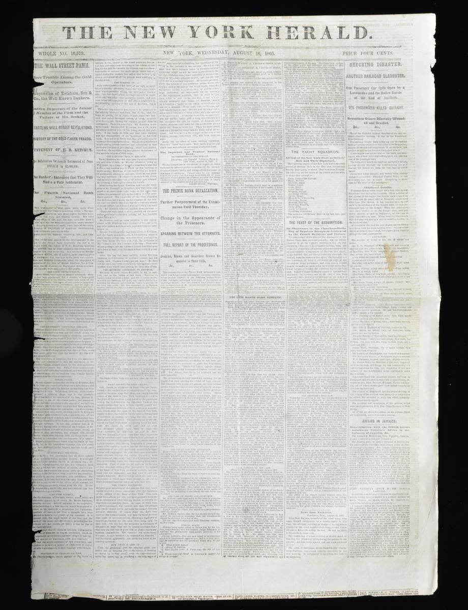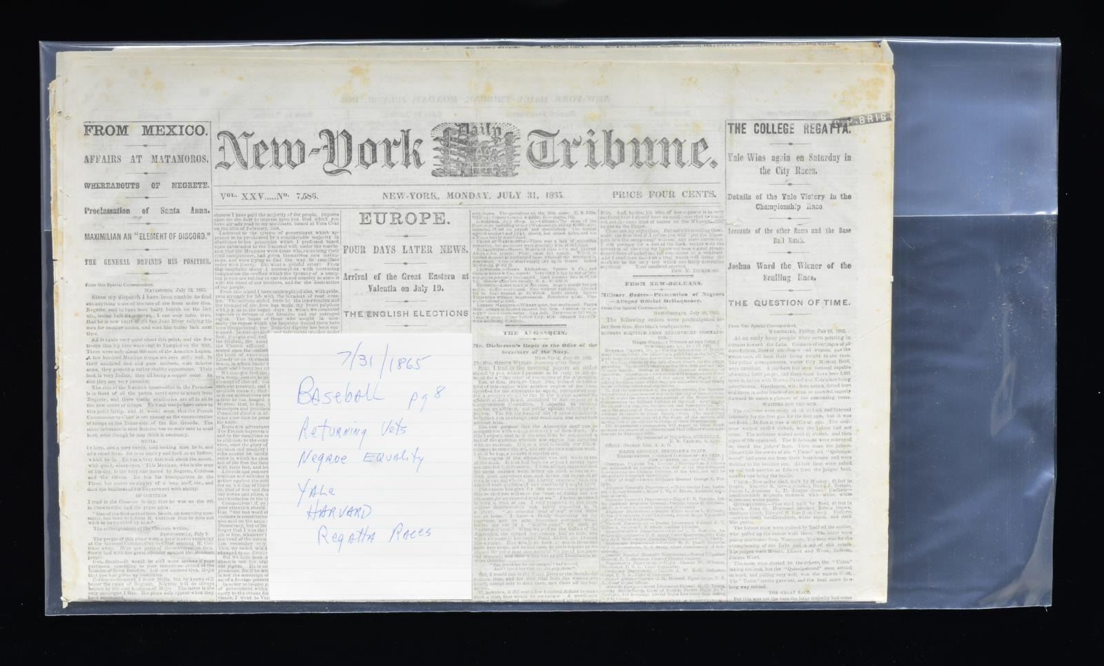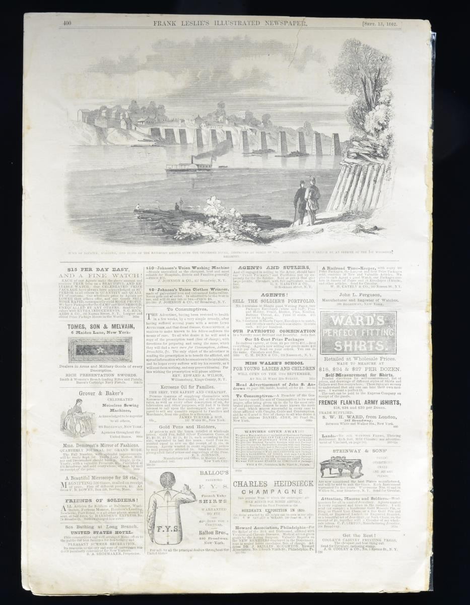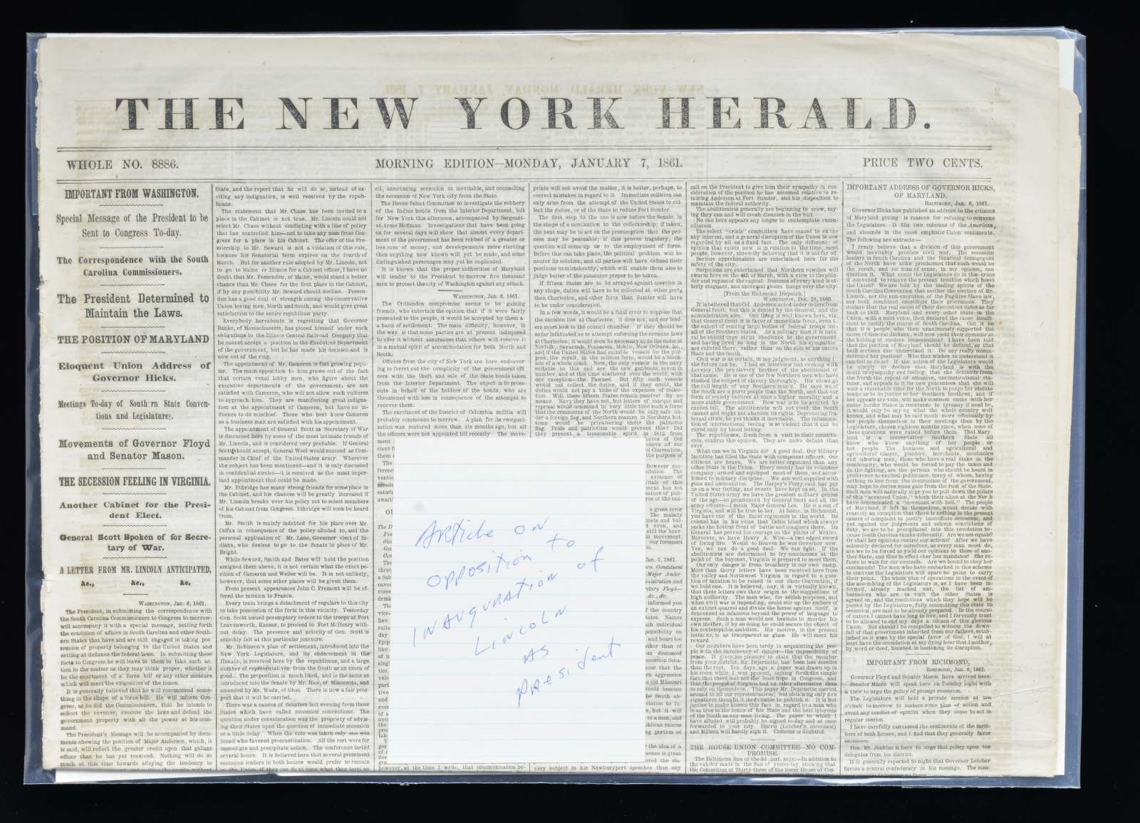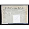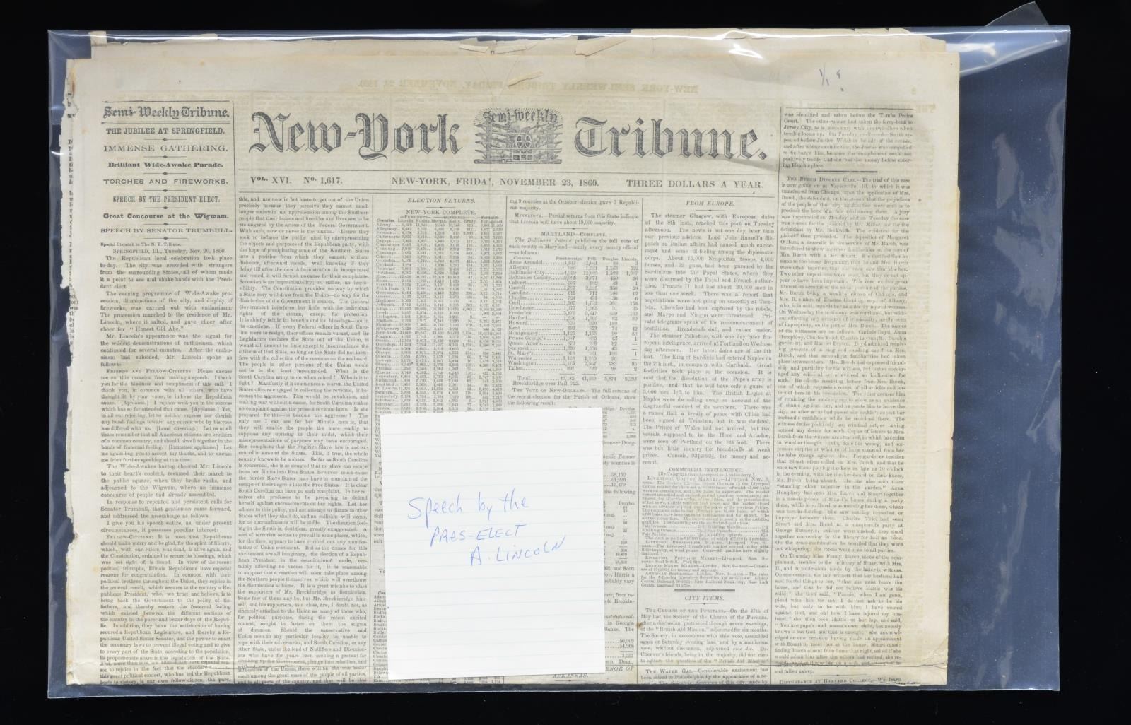 1) Group of 75+ Civil War era newspapers. 2) Fitz John Porter, ANS pencil, battle order, suspect. 3) Folio muster out role of Company K, 82nd Pennsylvania Volunteer Infantry. 4) Program from 1904 GAR encampment, Boston. 5) Fernald, Granville “The Story of the 1st Defenders”, 24 pages, wraps, inserted documents. CONDITION: fair, wraps loose, chipped & stained. 6) Pamphlet, “The Flags of the Confederate States of America”, 1907, wraps, color plate. CONDITION: very good. 7) Long, James “Gettysburg: How the Battle Was Fought” 1891, wraps, 98 pages. CONDITION: fair, missing rear wrap. 8) “The Confederate States Almanac And Repository for Useful Knowledge 1862”. Reprint by Atlanta Confederate veterans camp, wraps, 96 pages. CONDITION: missing rear wrap. 9) Prayers & Other Devotions for the Use of the Soldiers of the Army of the Confederate States, no date, Charleston, 12 pages, wraps. CONDITION: very good. 10) 2 Discharge documents w/ eagle vignette, Jacob G Creighton, 2nd independent Battery Light Artillery Ohio; Alexander A Lee, Co. G, 115th New York infantry. 11) Small archive of David Curry, Co. D, 124th NY. Quarter plate tintype of David & fellow soldier, one war date letter, 2 war date letters from brother Thomas, 3 prewar letters from San Francisco gold fields, enlistment paper w/ eagle vignette. 12) 16 x 16" silk handkerchief, American flag border, interior camp scene, circa 1900. CONDITION: fine. 13) 3 Pieces of Confederate currency. 14) Additional 40-50 misc. letters, receipts, documents & photographs, mostly post Civil War. (02-14426/JS). $500-1,000.