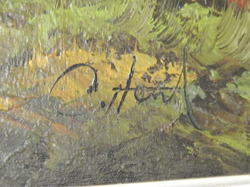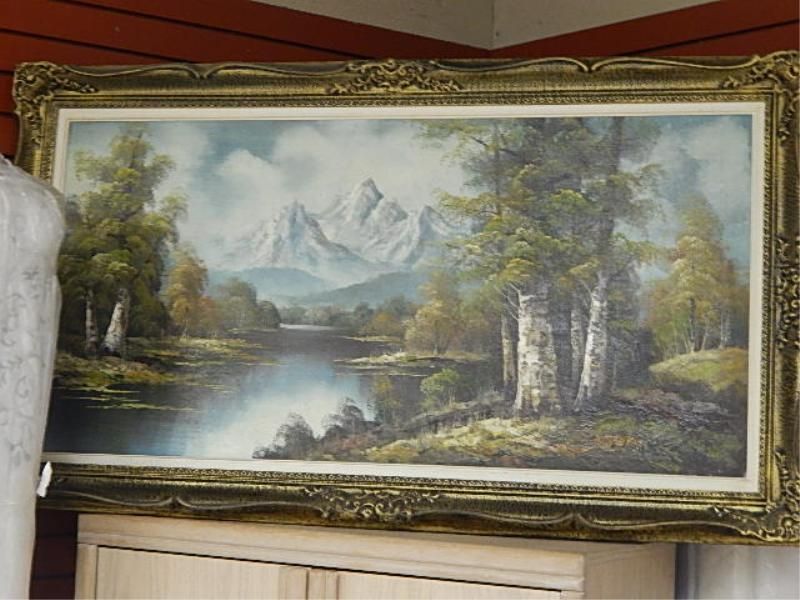 LARGE GUILDED FRAMED ORIGINAL OIL ON CANVASS - RIVER & MOUNTIANS - SIGNED