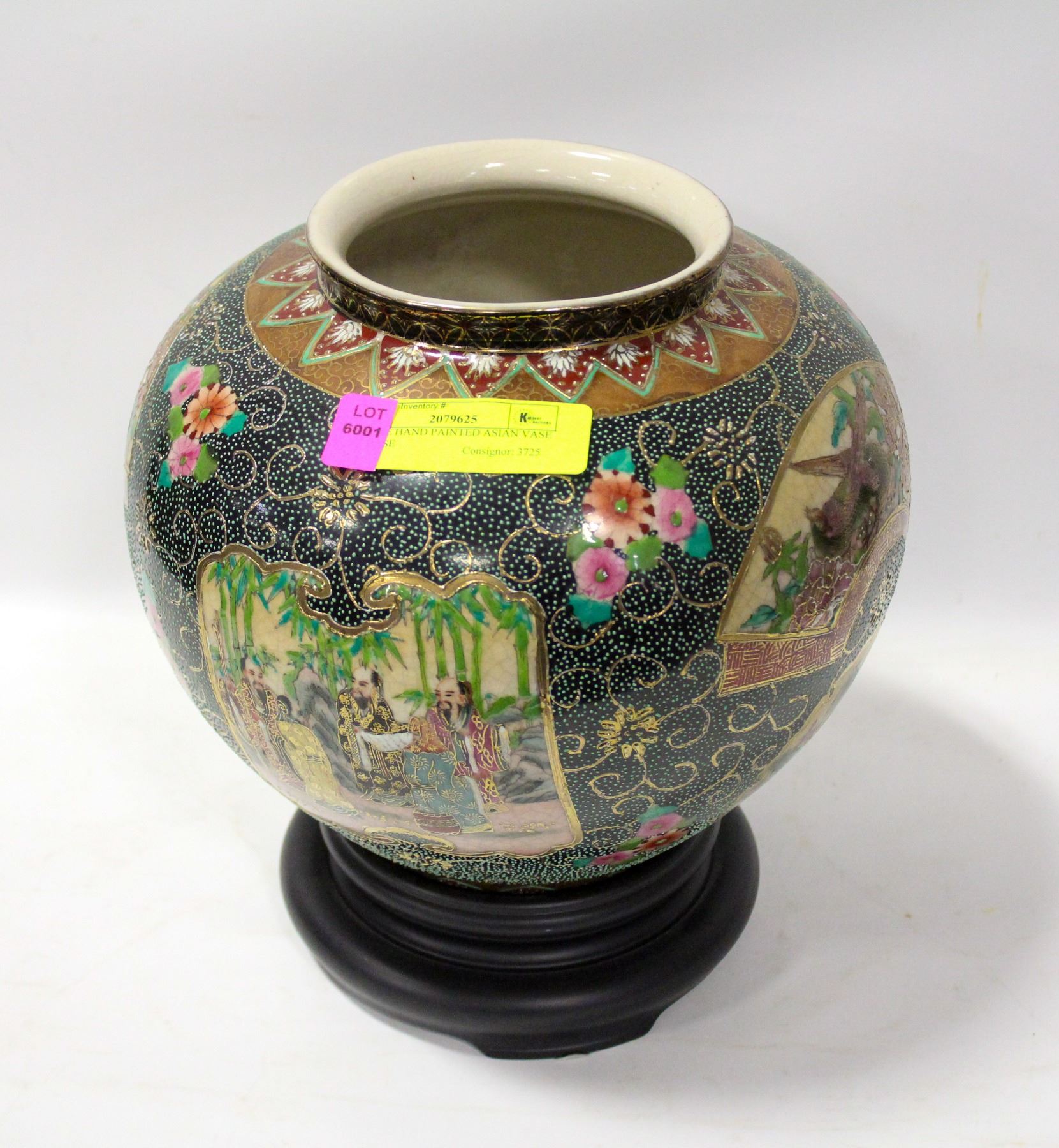 LARGE HAND PAINTED ASIAN VASE W BASE