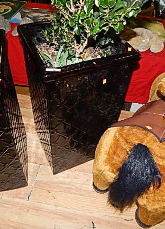 LARGE HEAVY BLACK PLANT POT WITH LIVE PLANT - REALLY HEAVY