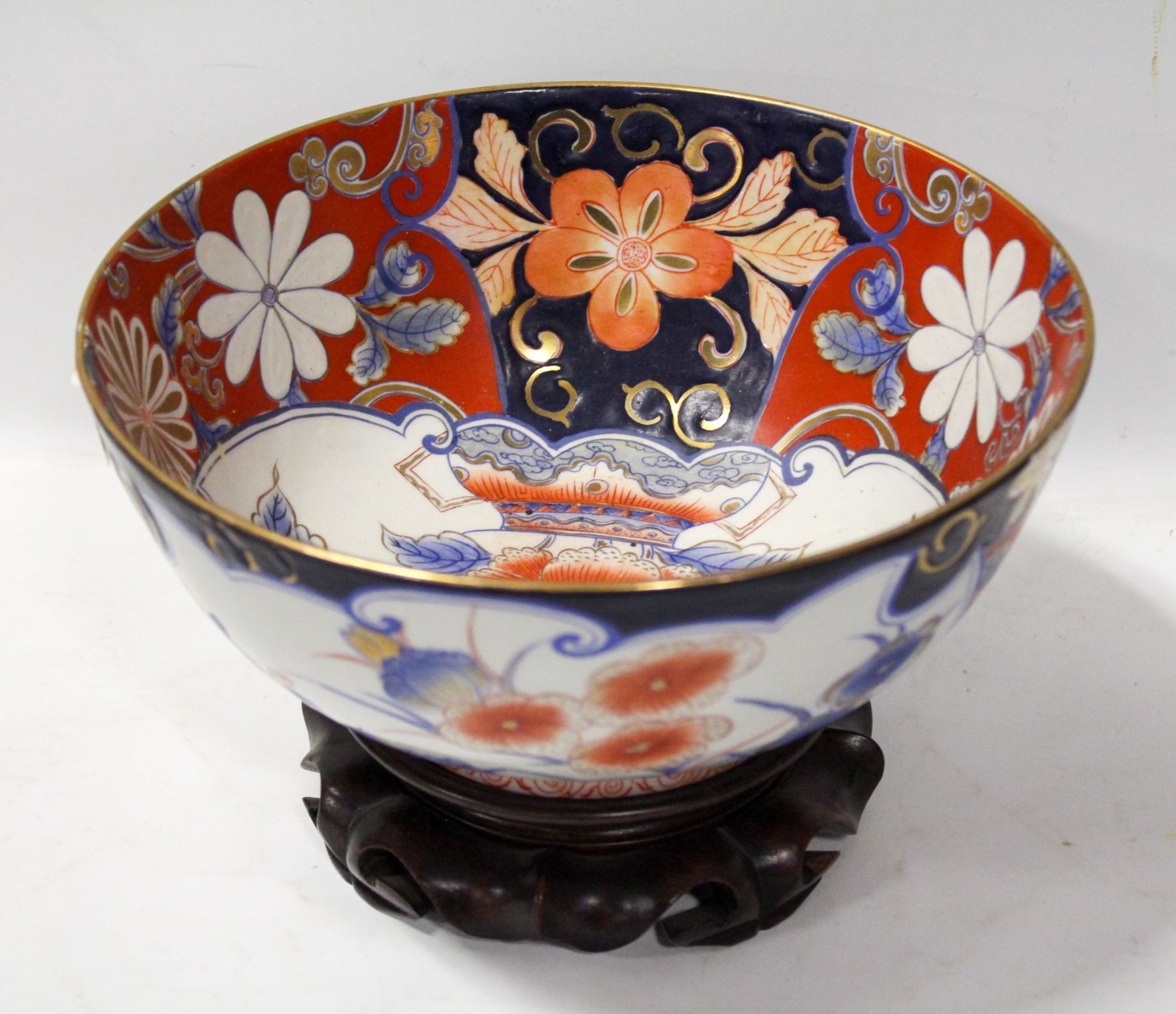 LARGE IMARI HAND PAINTED BOWL W STAND