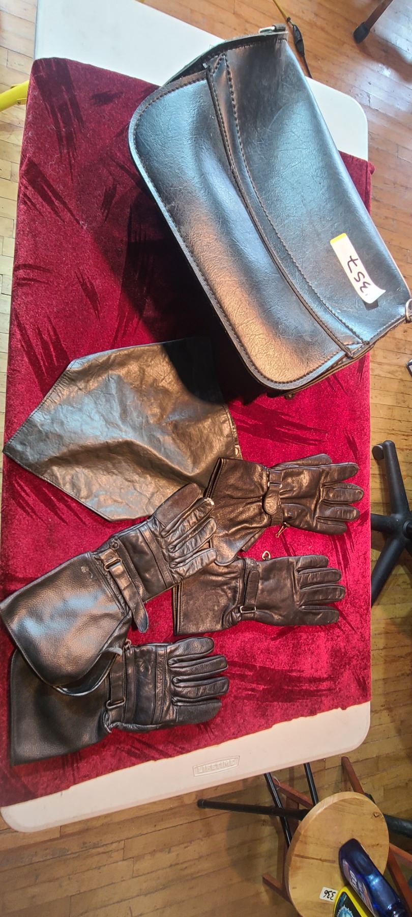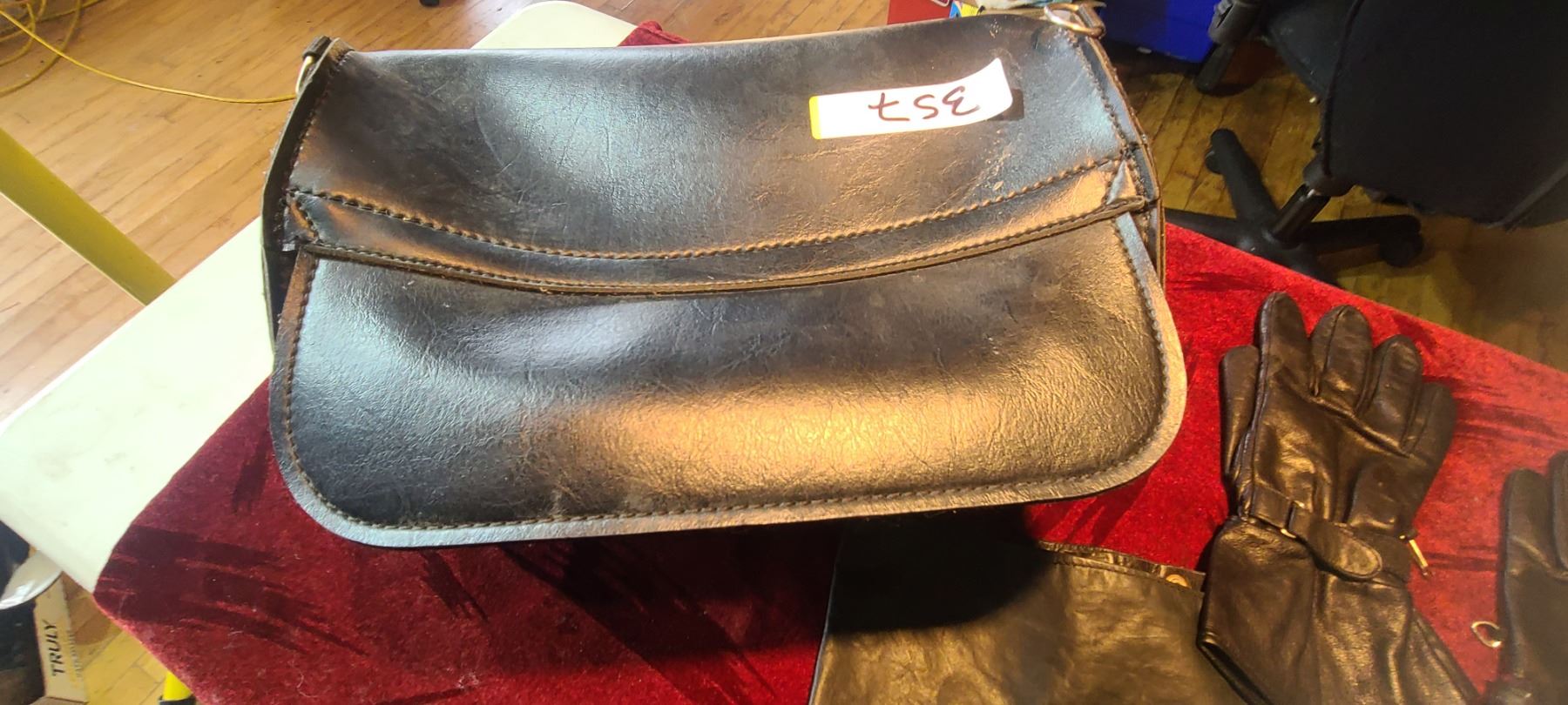 LARGE LEATHER MOTORCYCLE BAG C/W MED / LG LEATHER GLOVES