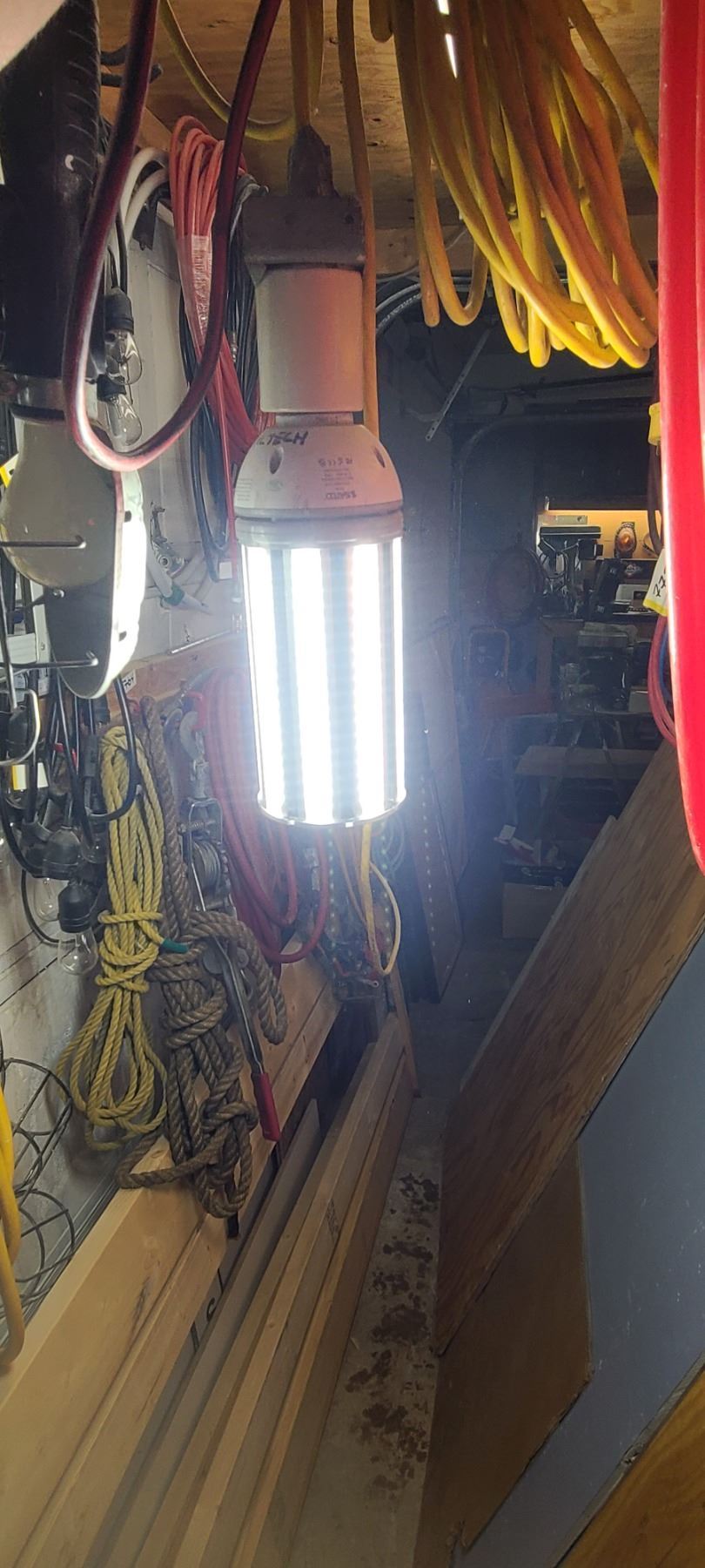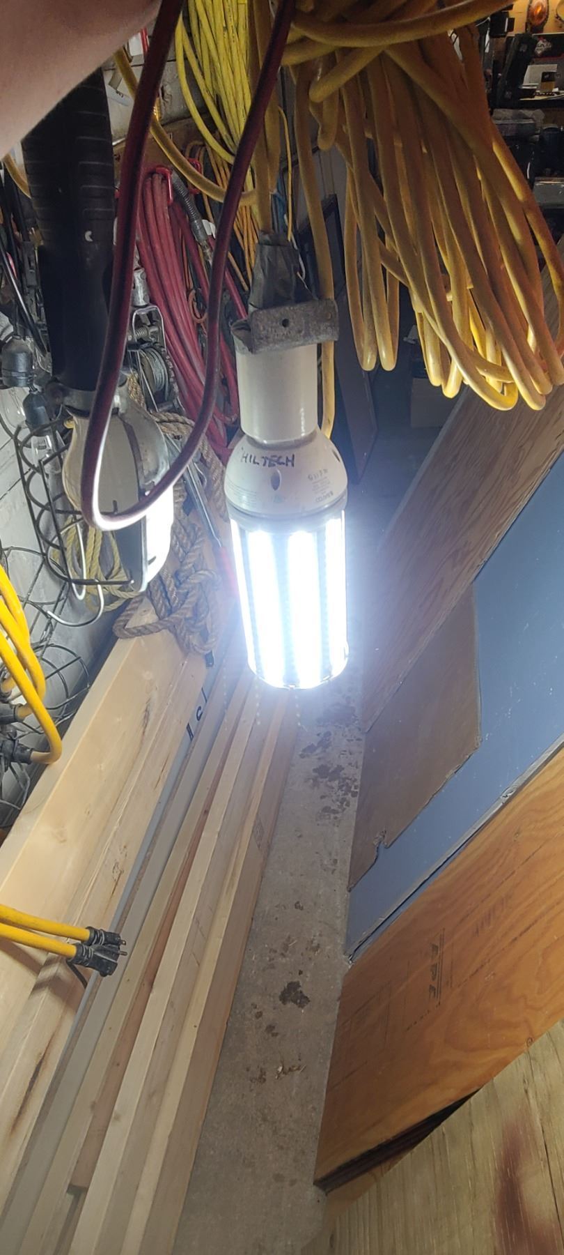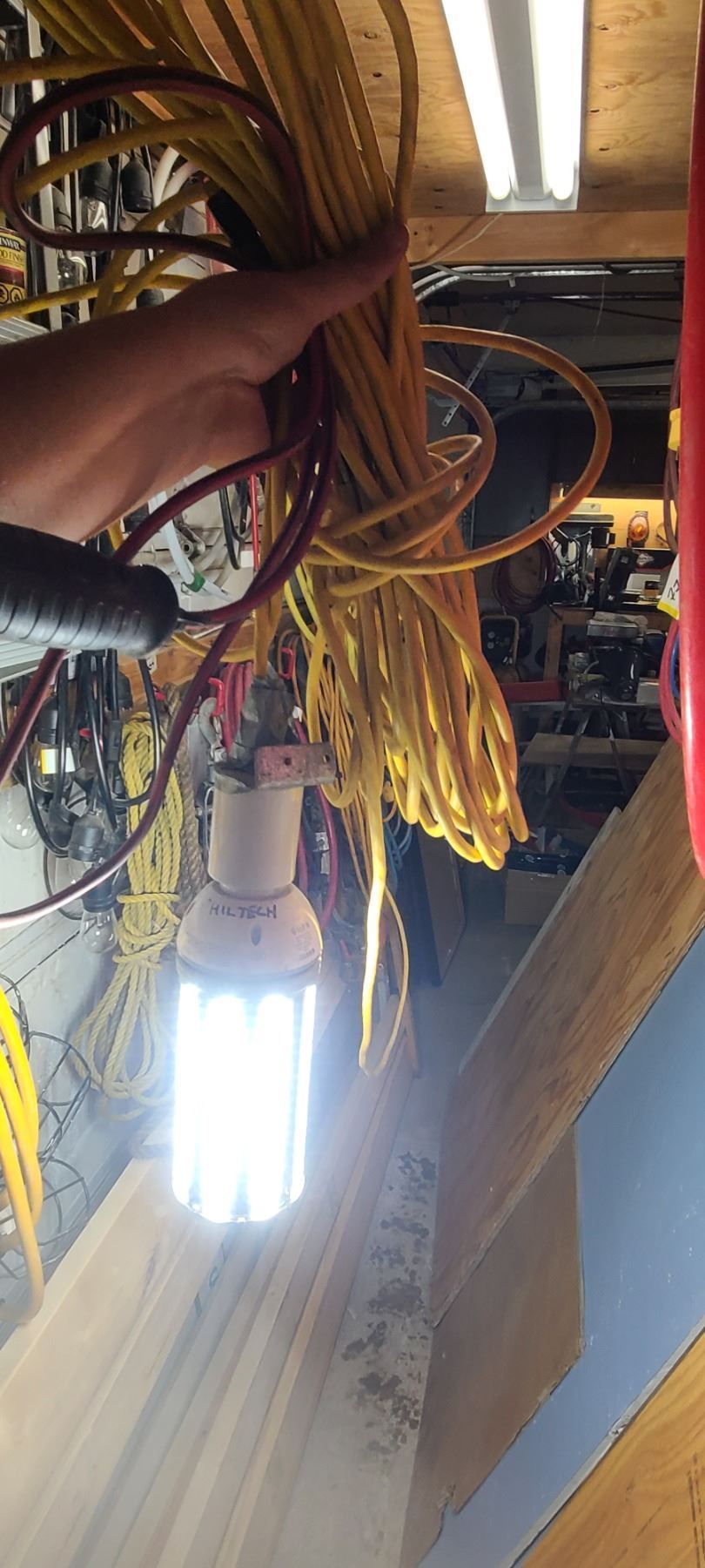 LARGE LED LIGHT ATTACHED TO 25' EXTENSION CORD AND SMALLER TROUBLE LIGHT