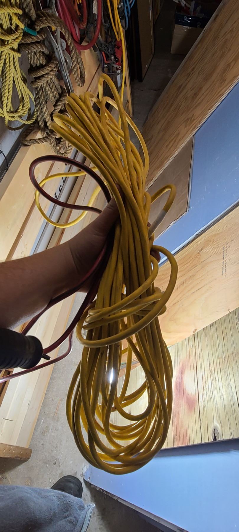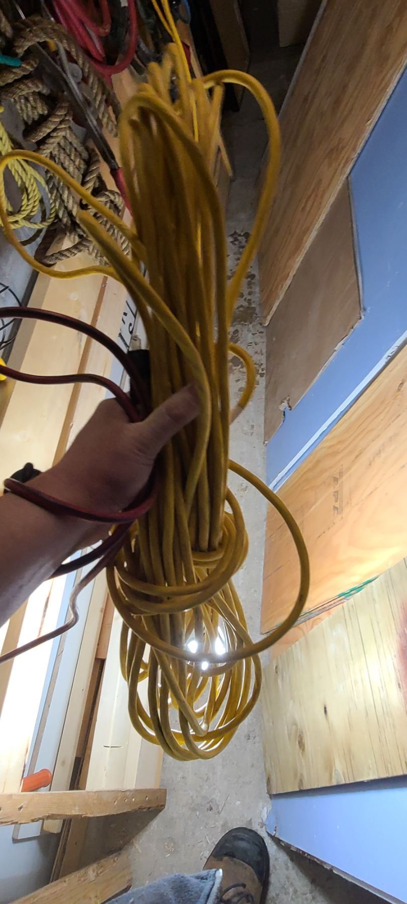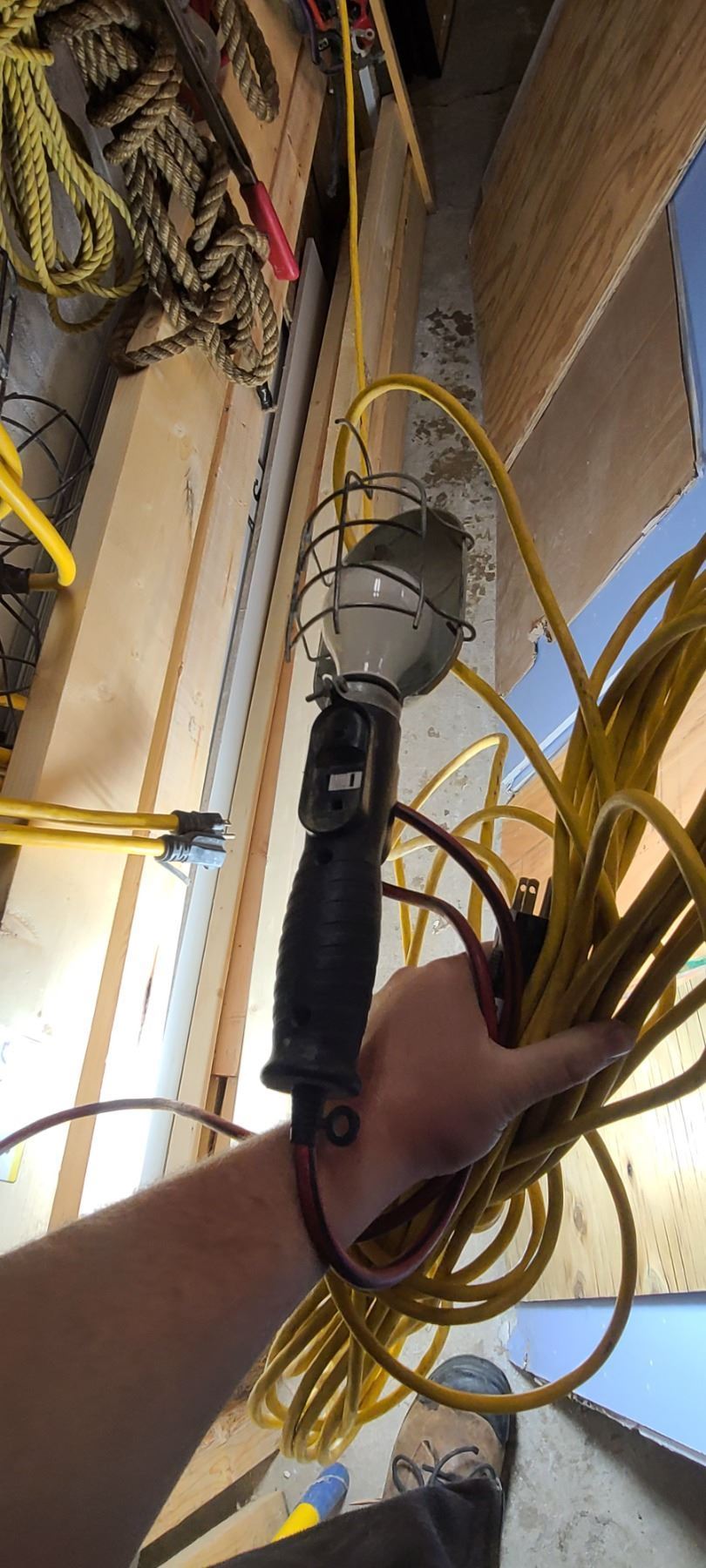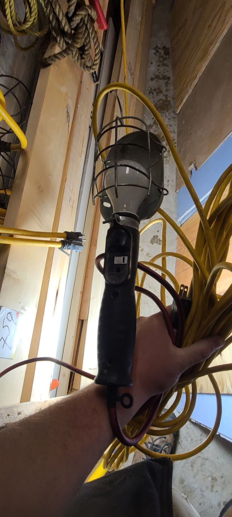 LARGE LED LIGHT ATTACHED TO 25' EXTENSION CORD AND SMALLER TROUBLE LIGHT