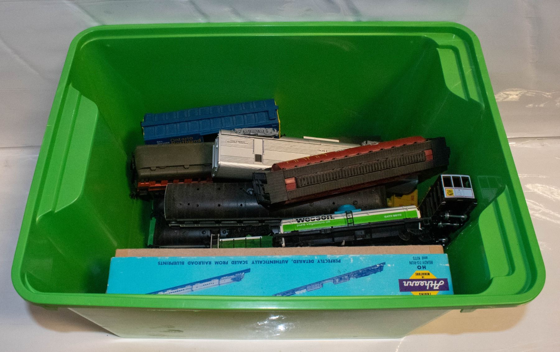 LARGE LOT HO TRAIN ENGINE AND CARS ASSTD