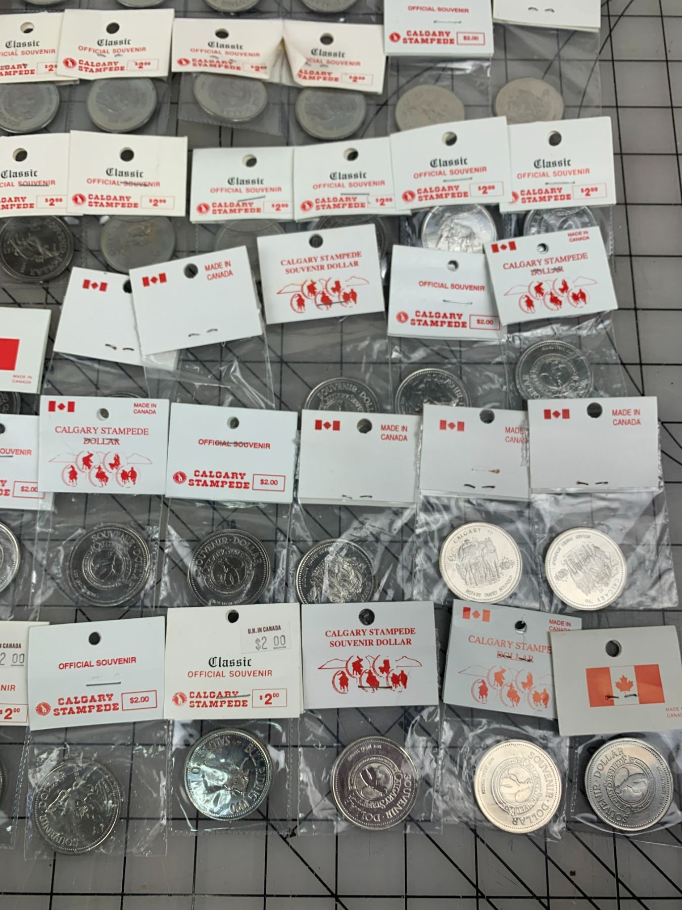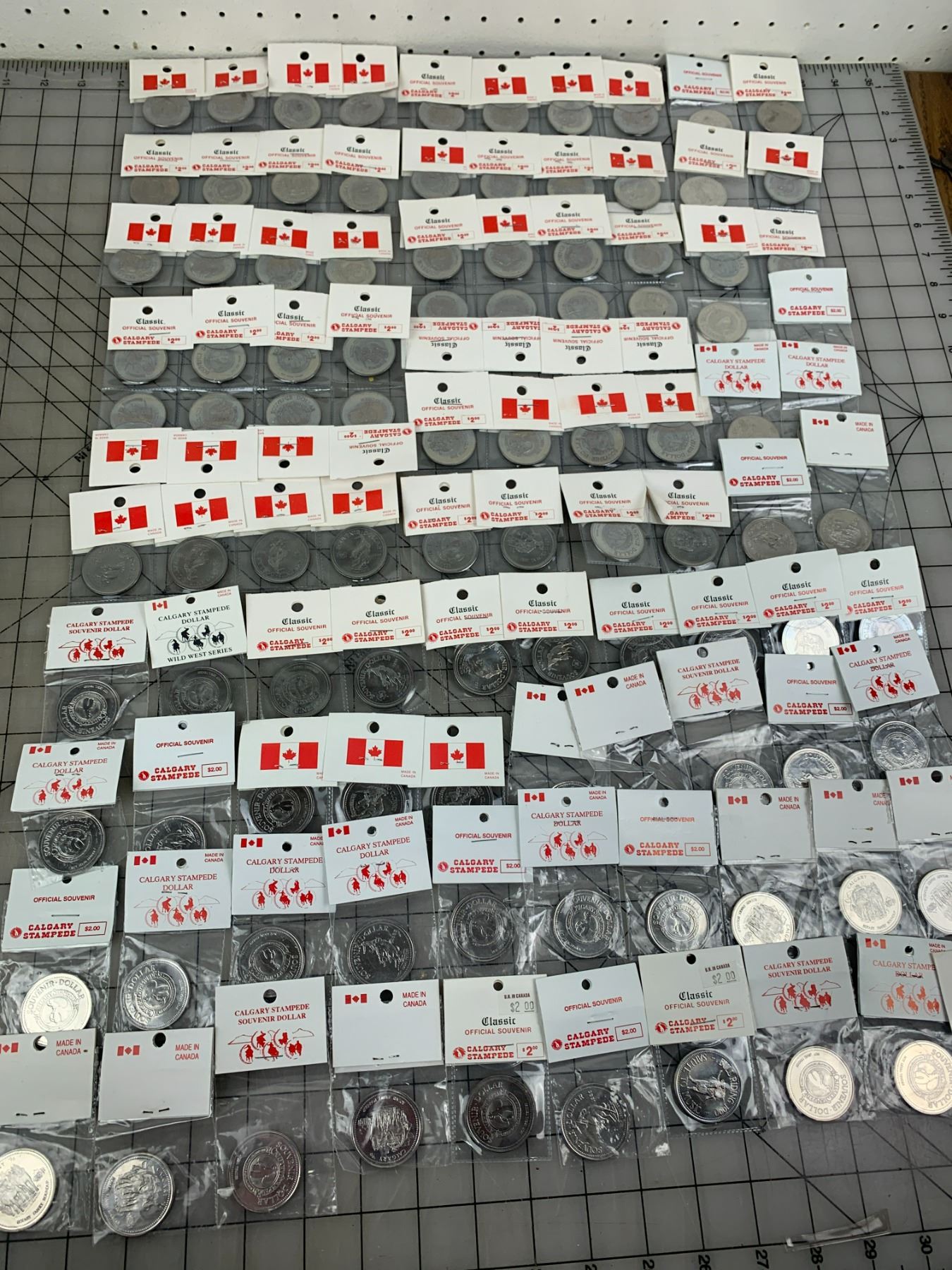 LARGE LOT OF 100 VINTAGE CALGARY STAMPEDE SOUVENIR DOLLARS VARIOUS YEARS