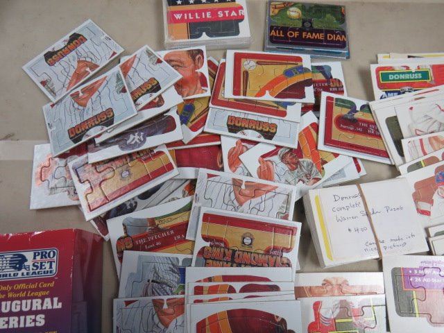 LARGE LOT OF ASSORTED BASEBALL CARDS AND PUZZLE CARDS (DONRUSS, LEAF KING, ETC..)