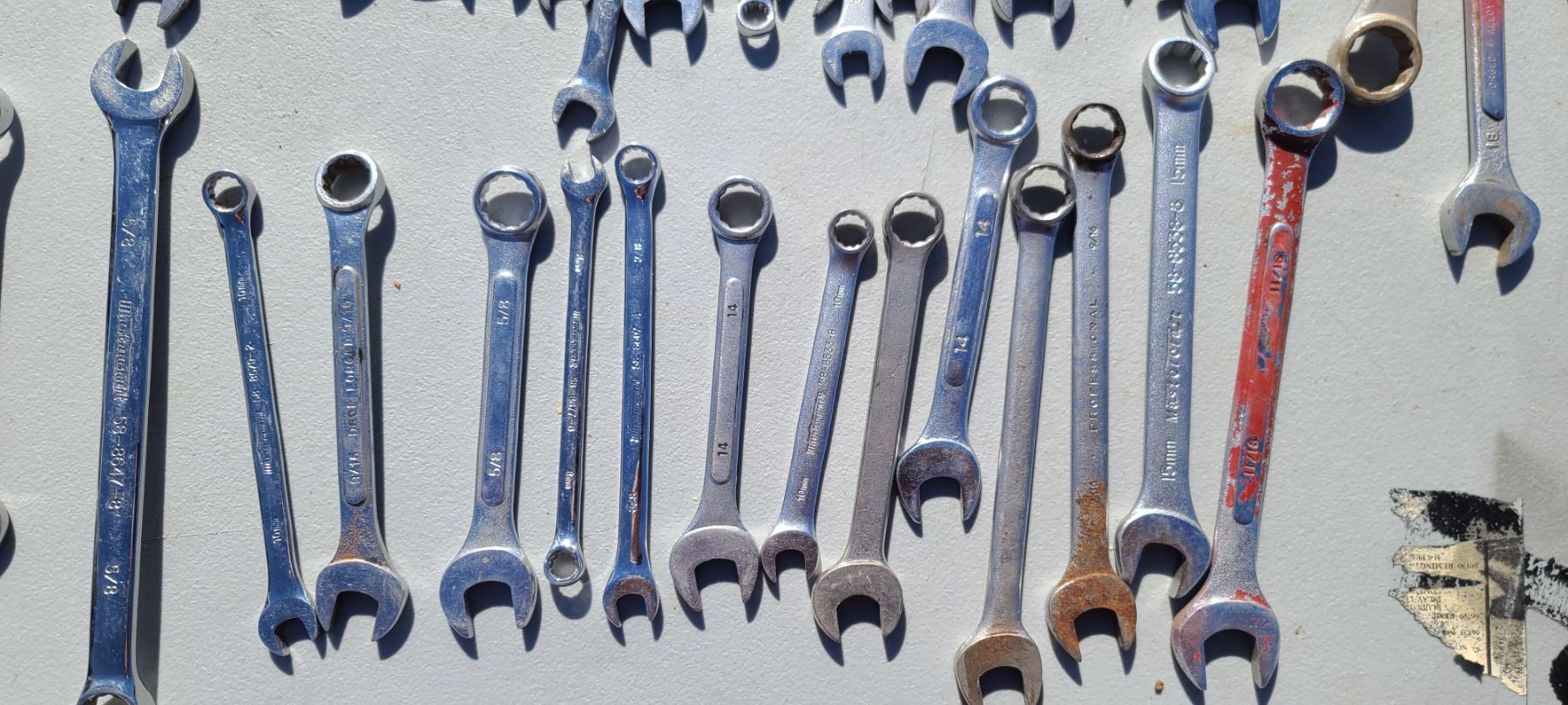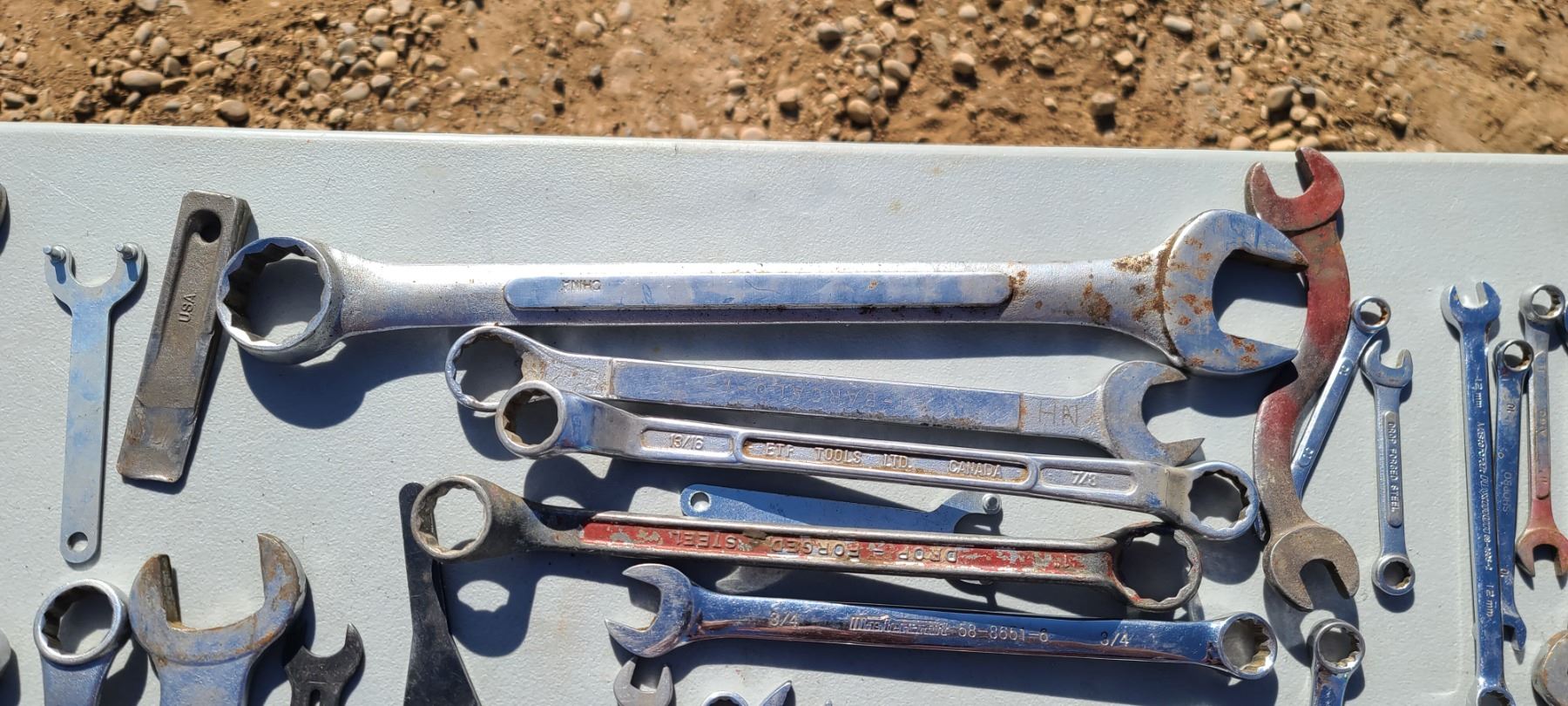 LARGE LOT OF ASSORTED WRENCHES STANDARD AND METRIC
