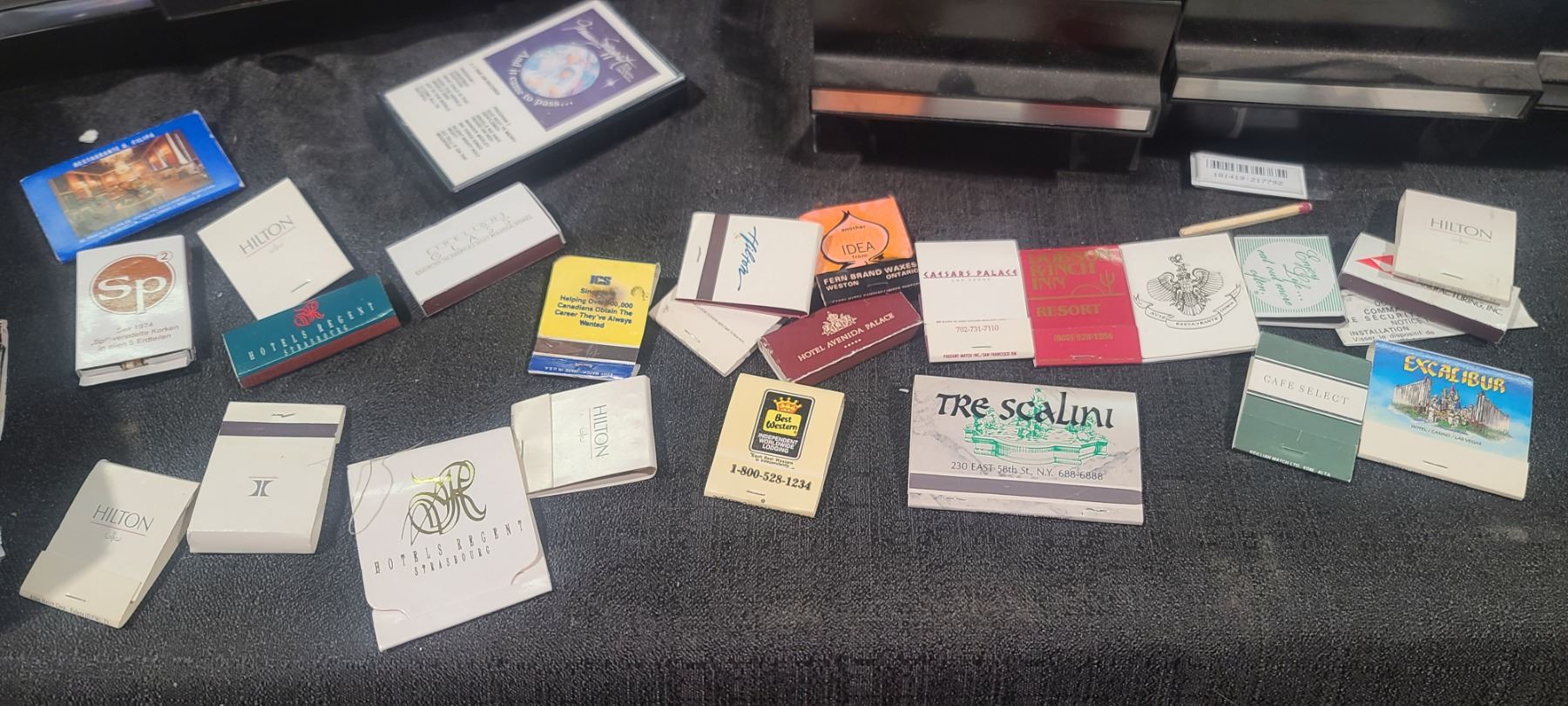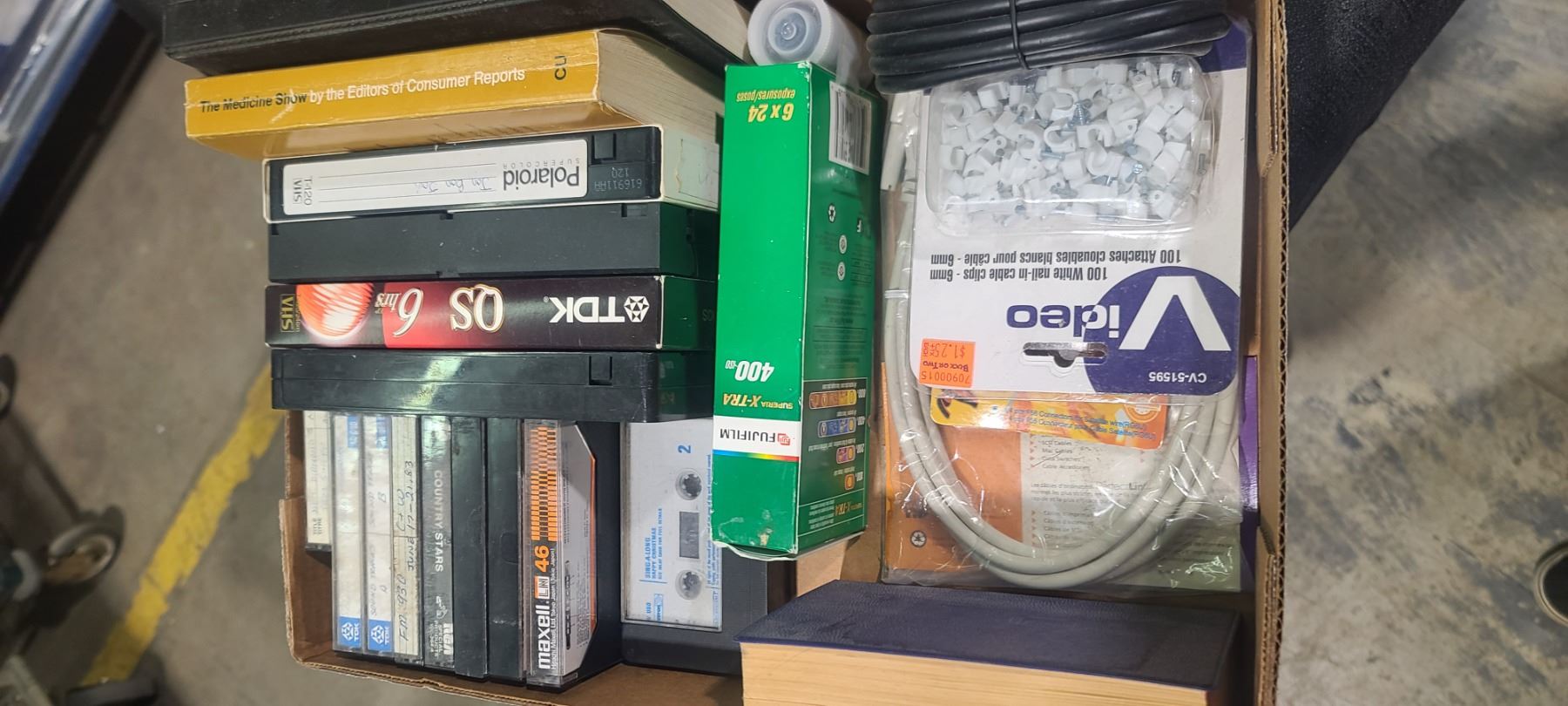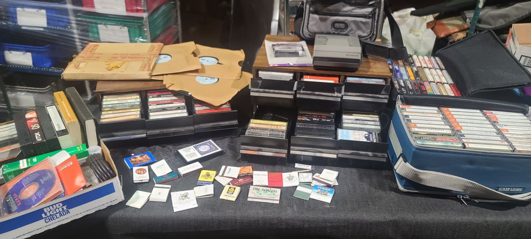 LARGE LOT OF CASSETTE TAPES, POLAROID SPECTRA SYSTEM CAMERA, VHS, AND LAS VEGAS HOTEL MATCHES