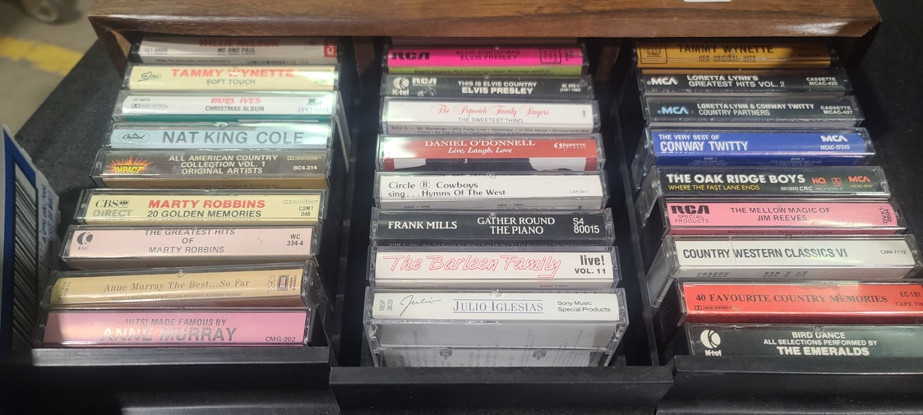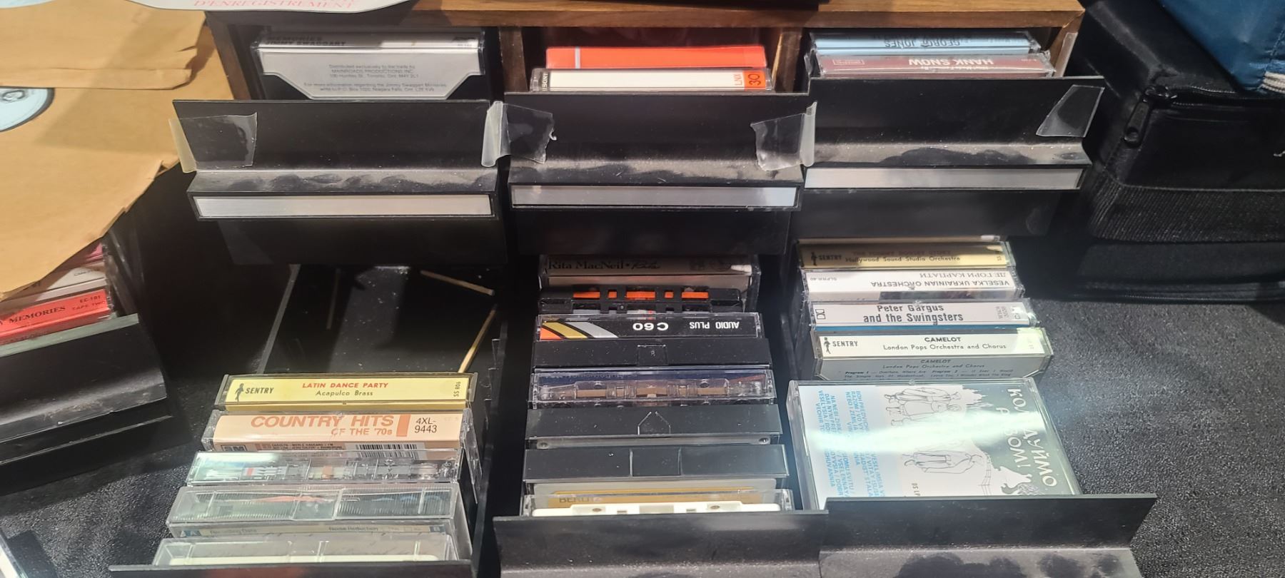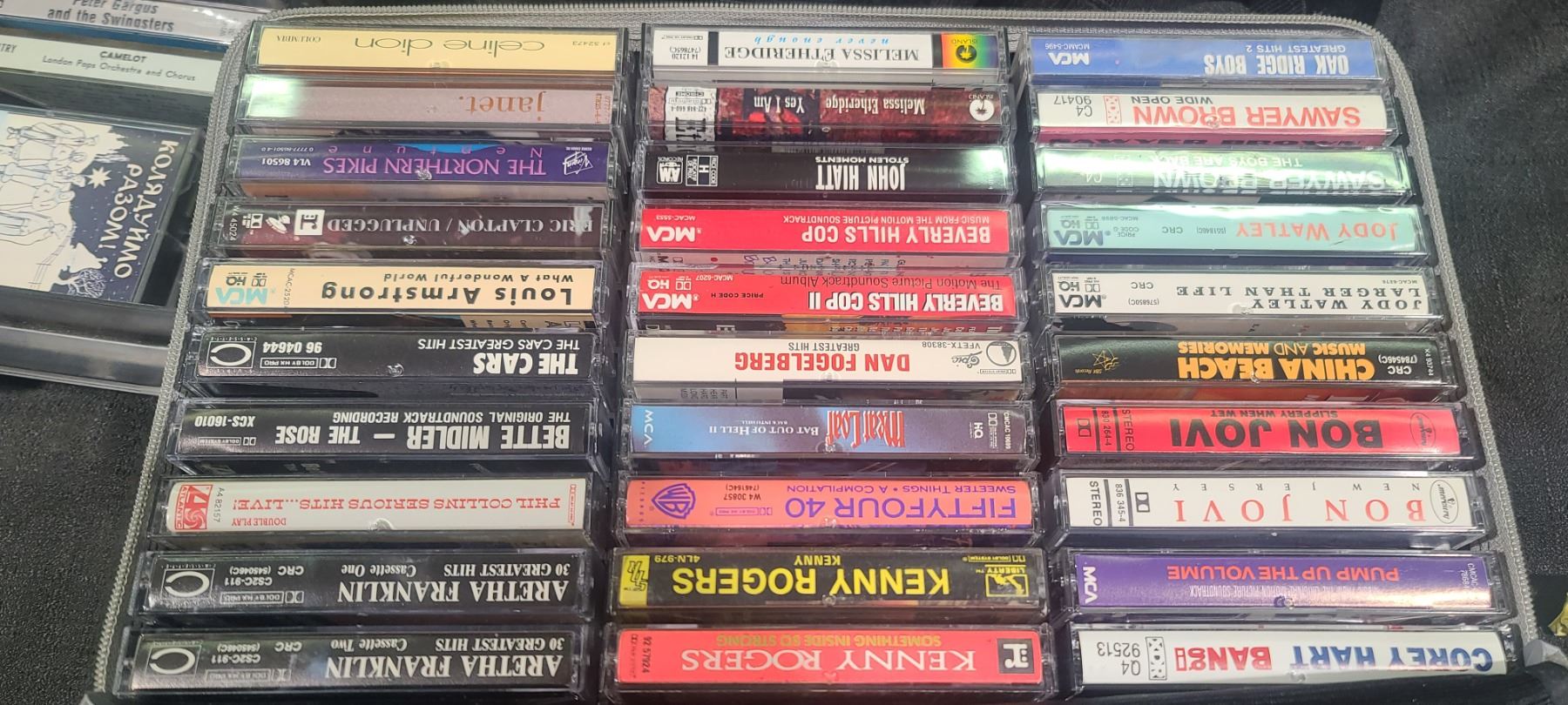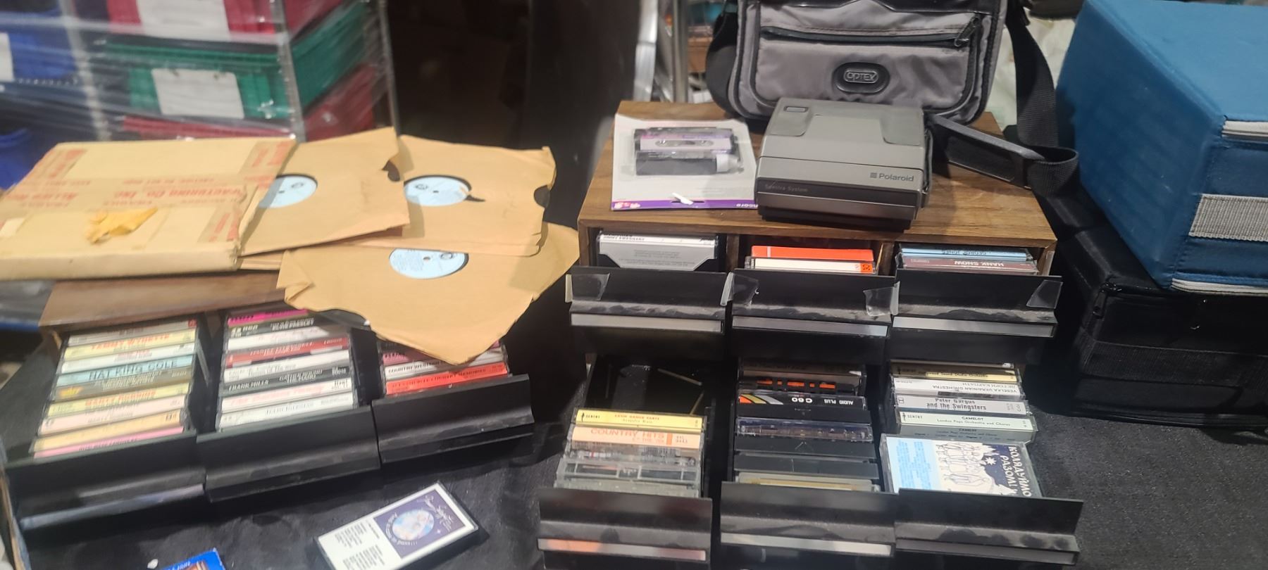 LARGE LOT OF CASSETTE TAPES, POLAROID SPECTRA SYSTEM CAMERA, VHS, AND LAS VEGAS HOTEL MATCHES
