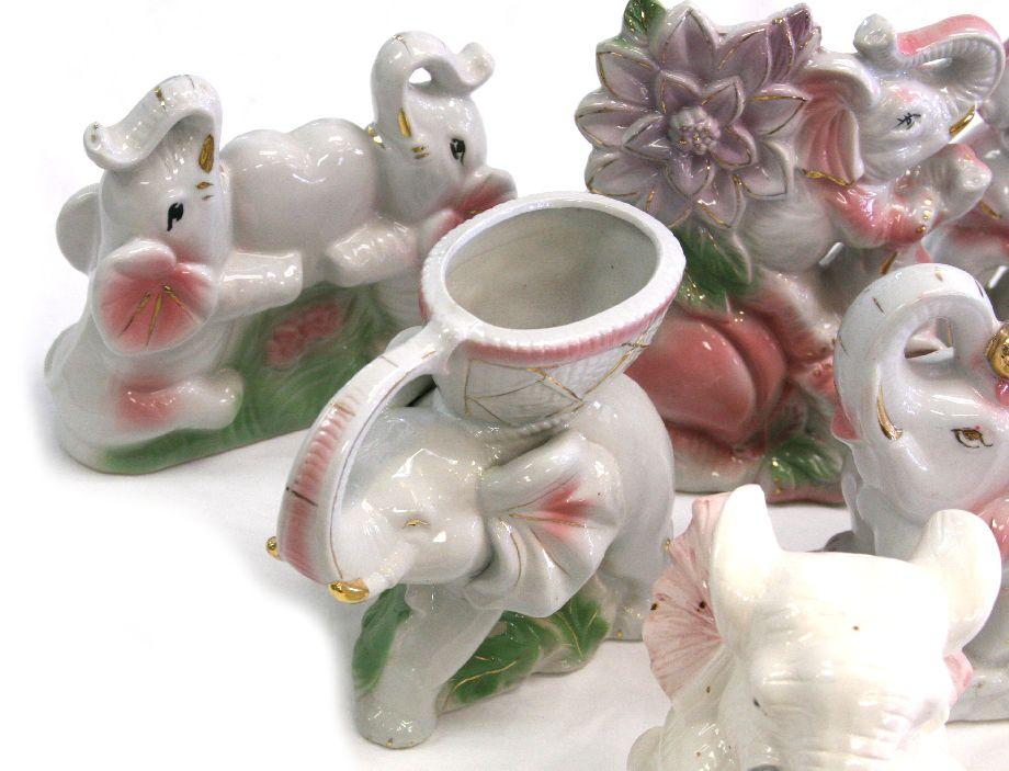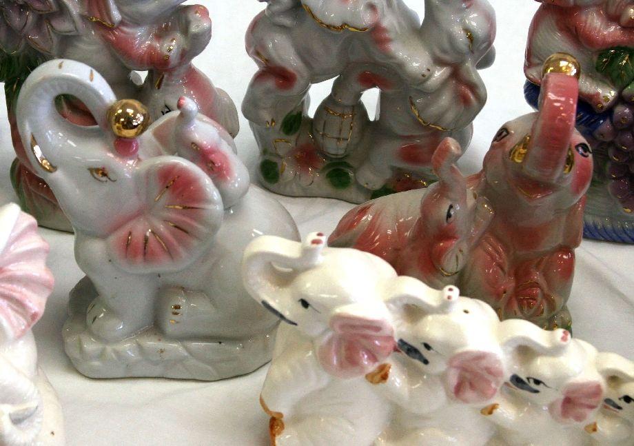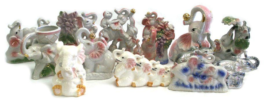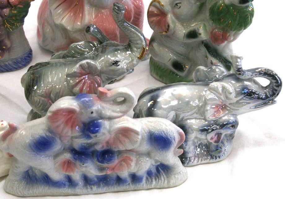 20th C. Lot of 14 ceramic painted elephants ranging from 5 to 9 inches in height. Very good condition.