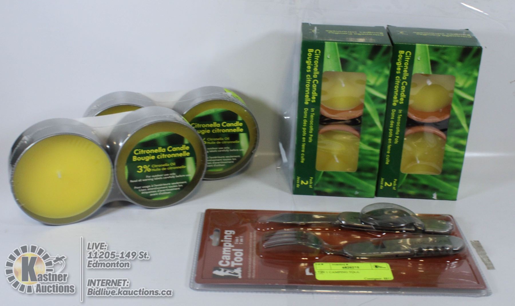 LARGE LOT OF CITRONELLA CANDLES AND MORE.
