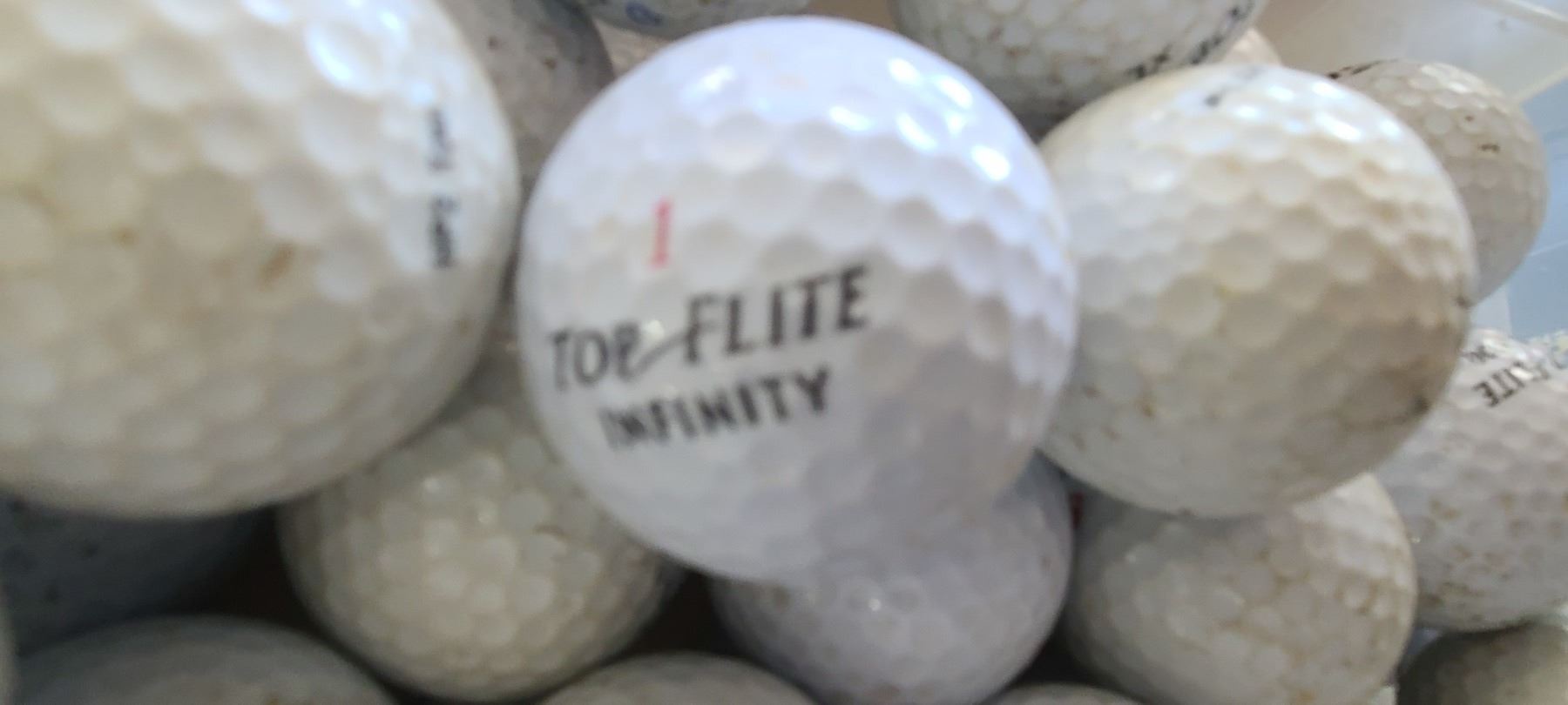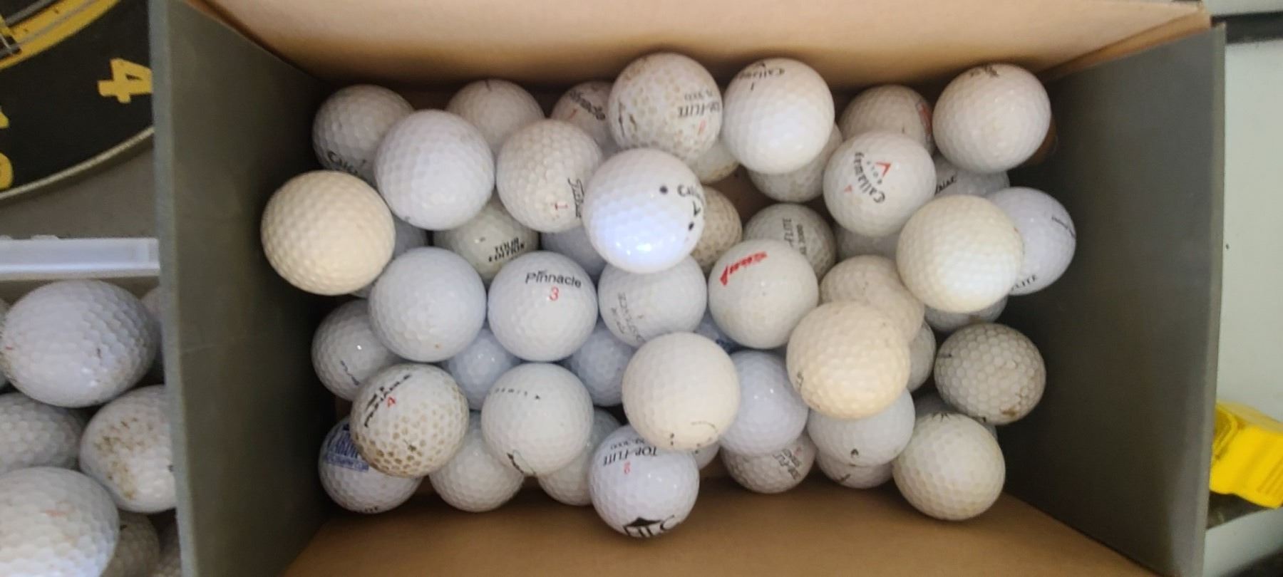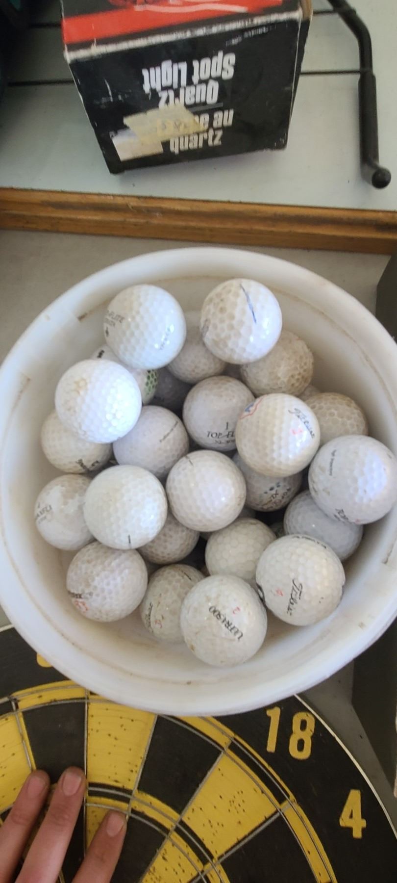 LARGE LOT OF GOLF BALLS 150+/- PLUS DART BOARD
