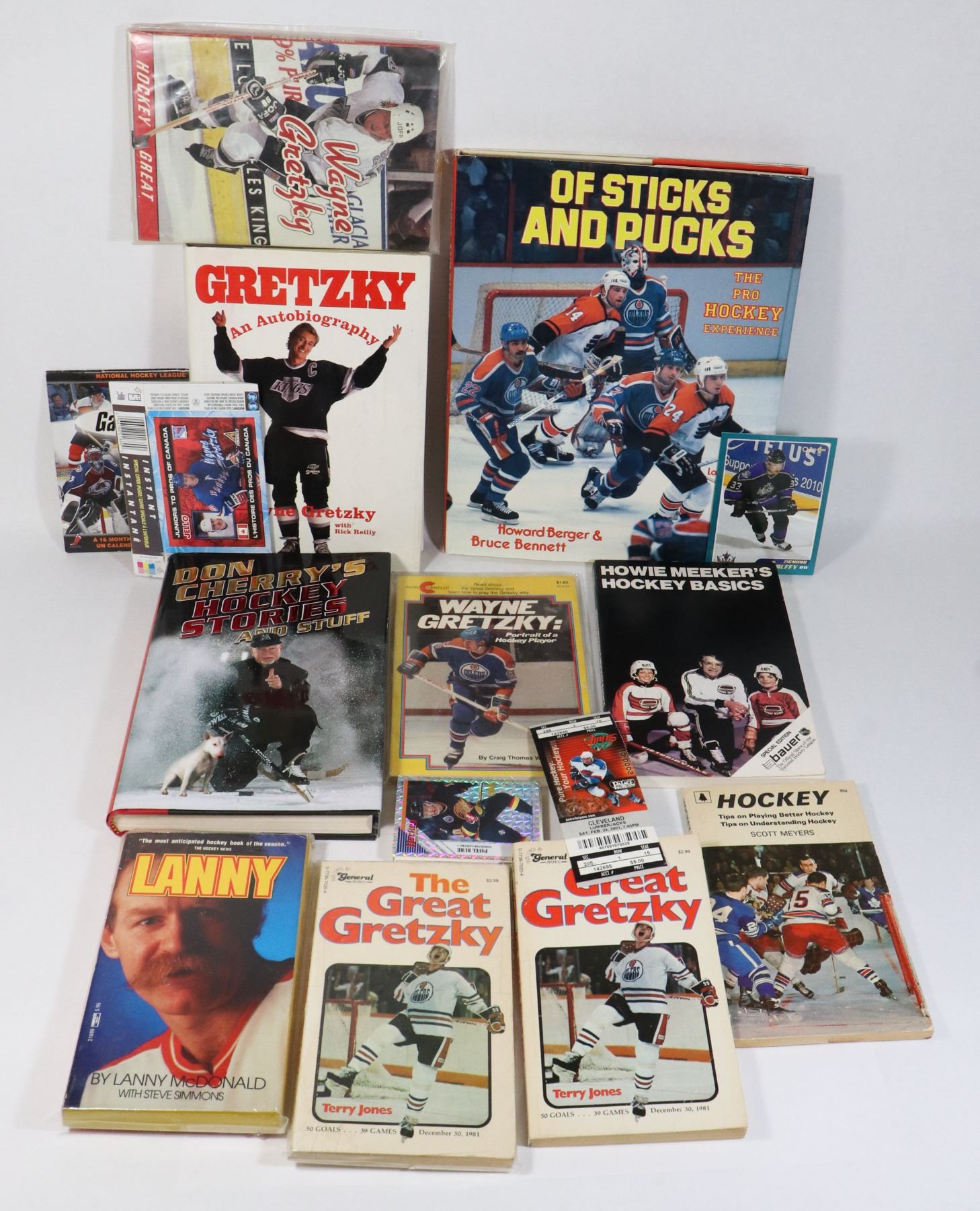 WAYNE GRETZKY PORTRAIT OF A HOCKEY PLAYER, WAYNE GRETZKY AN AUTOBIOGRAPHY WITH RICK REILLY, 2 COPIES OF THE GREAT GRETZKY, WAYNE GRETZKY HOCKEY GREAT, OF STICKS AND PUCKS THE PRO HOCKEY EXPERIENCE, HOWIE MEEKER'S HOCKEY BASICS, TIPS ON PLAYING BETTER