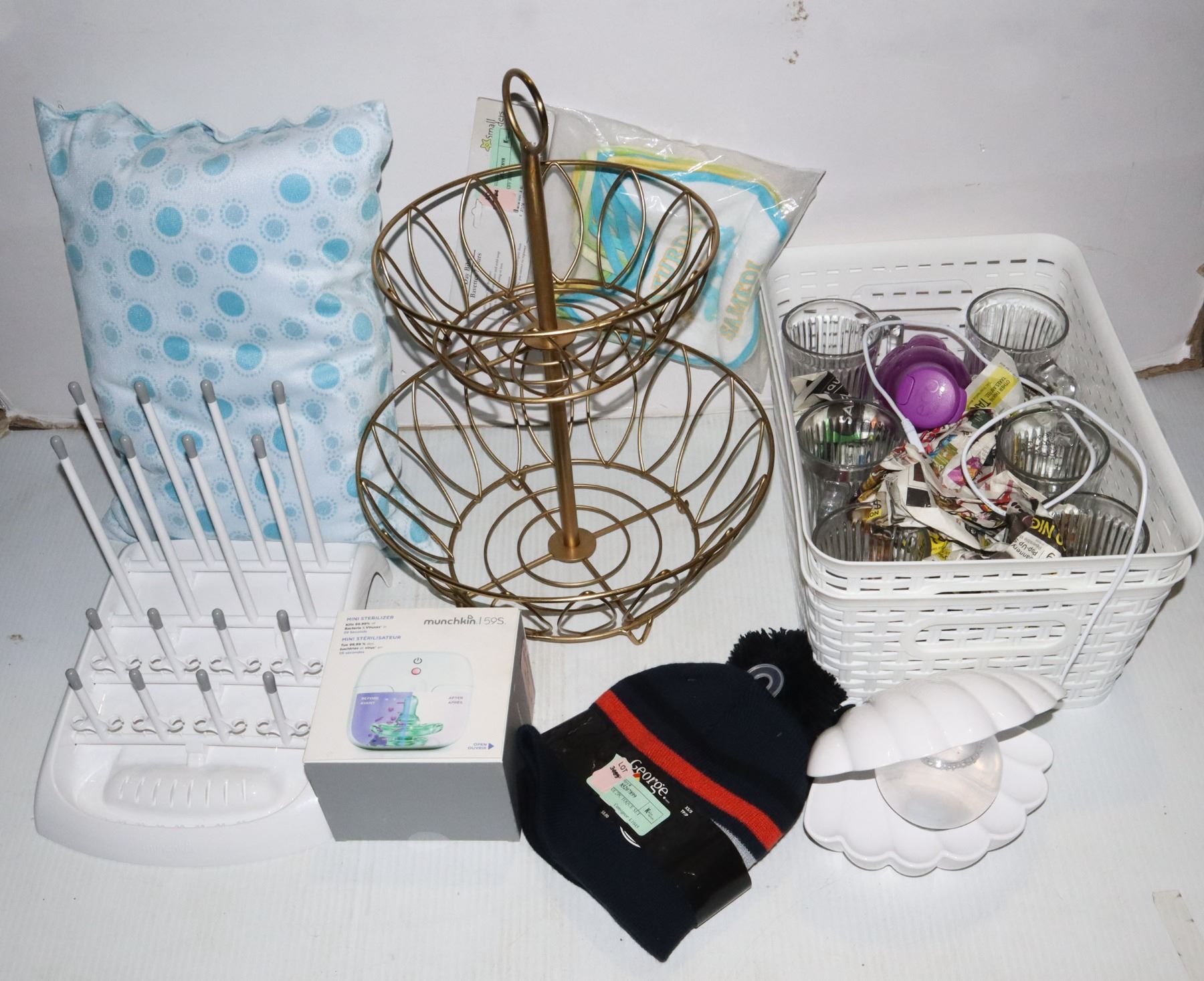 BABY AND KID ITEMS (SOME NEW) LIGHT UP SHELL DECORATION, GLASSES, METAL FRUIT BOWL, AN DMORE