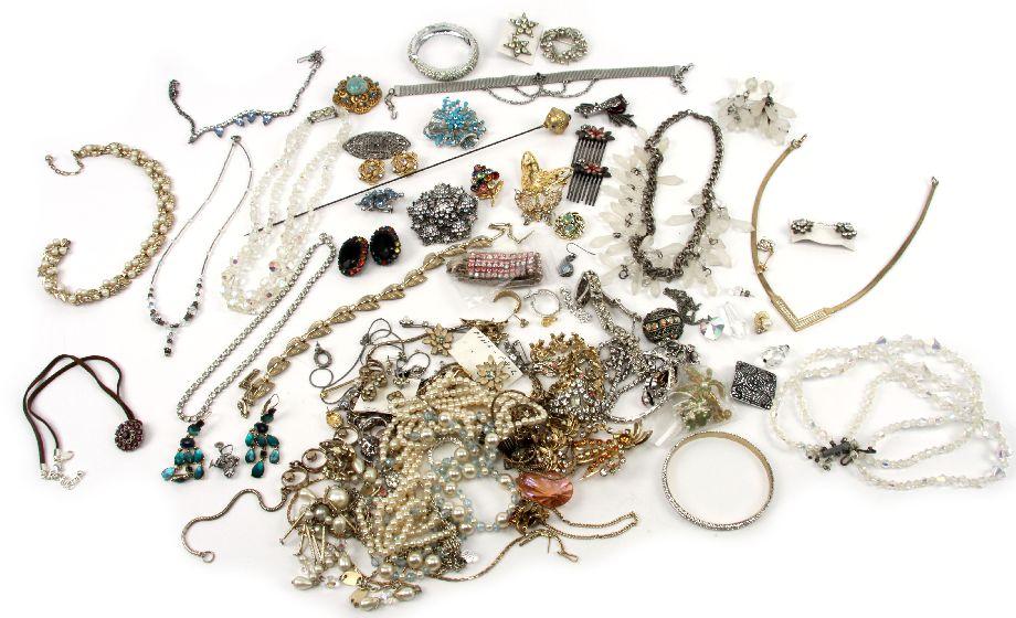 A good collection of ladies costume necklaces, pin, bracelets and earrings with pieces by Coro, Dior, Florenza, M&S Co, Avon, Liz Claiborne, and Trifari. . Condition: Good condition with a few pieces missing stone.