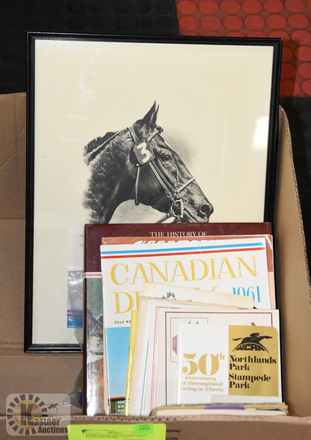 1960 NORTHLANDS CANADIAN DERBY RACING PROGRAM, 1961 NORTHLANDS CANADIAN DERBY RACING PROGRAM, 1972 NORTHLANDS CANADIAN DERBY RACING PROGRAM, 1973 NORTHLANDS CANADIAN DERBY RACING PROGRAM, 1973 CALGARY RACING PROGRAM, 1975 50TH ANNIVERSARY OF HORSE RACING BOOKLET, FOR BETTOR OR HORSE NORTHLANDS CARTOON BOOKLET, 1961 CANADIAN DERBY MAGAZINE, 1976 HORSE RACING MAGAZINE, 1959 INVITATION TO 9TH ANNUAL DERBY DAY LUNCHEON, 1964-1969 BONANZA BREAKFAST INVITATIONS + 1956 KENTUCKY DERBY WINNER - NEEDLES PRINT