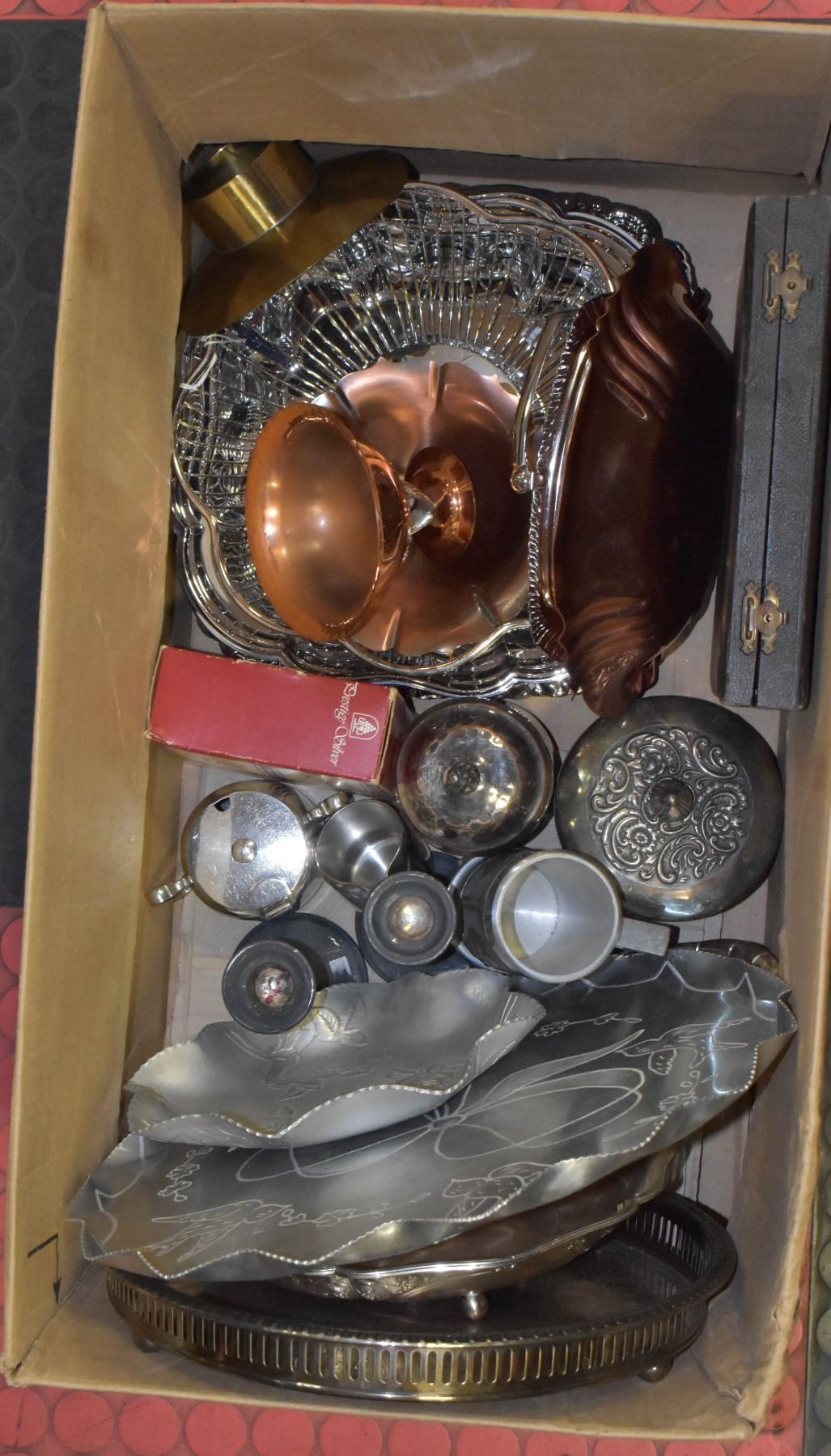 LARGE LOT OF SILVER TONE AND COPPER DISHES